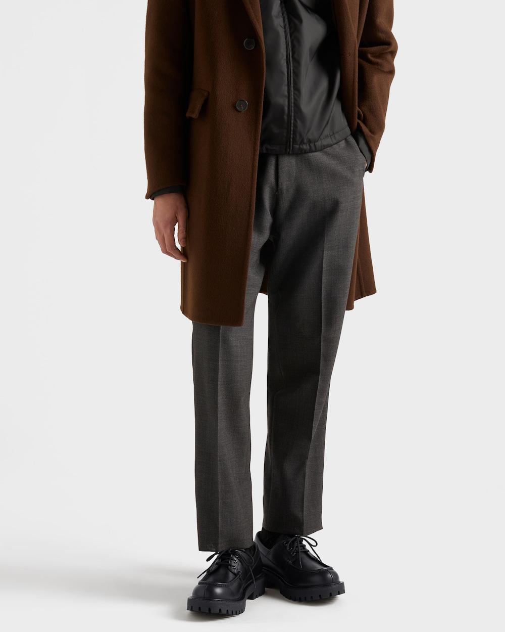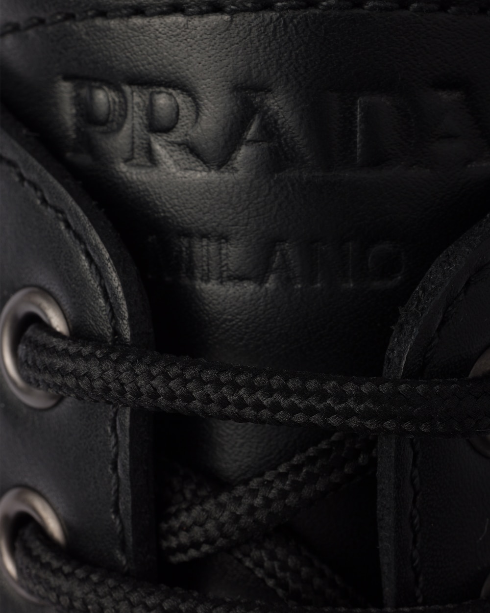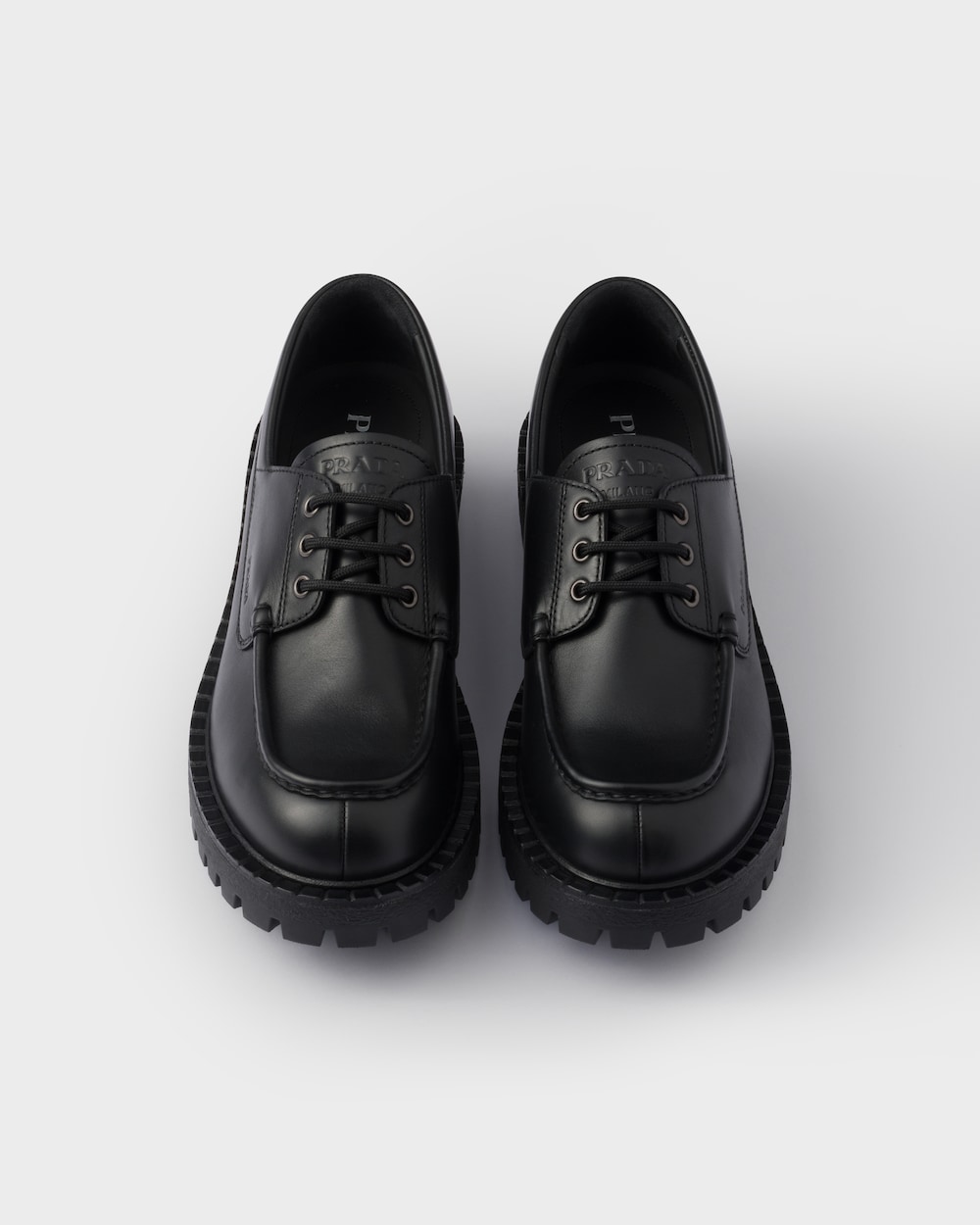 このレースアップローファーは、クラシックなラインと現代的な機能性を組み合わせたハイブリッドデザインが特徴です。スポーティなラバーソールで定義されたレザーデザインには、エナメルメタルトライアングルロゴが装飾されています。
