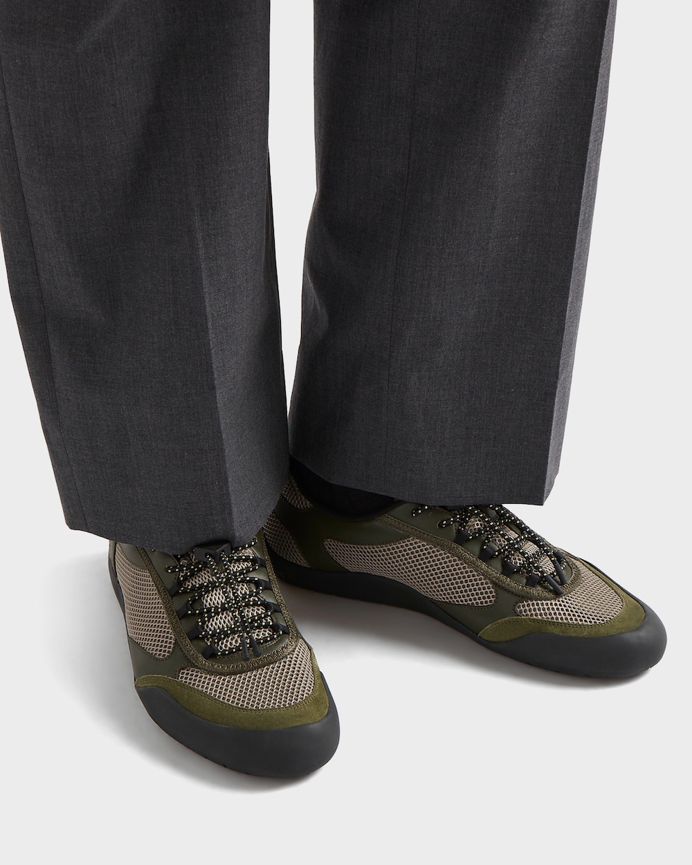 軽量で柔軟性があり、都会のリズムに合わせて設計されたスピードロックスニーカーは、好奇心旺盛で革新的な精神を体現しています。デザインは正確で機能的であり、メッシュアッパーにレザープロフィールを加えています。テクニカルコードのディテールがアウトドアのダイナミズムを呼び起こします。ラバーソールが、都市と自然の対話にインスパイアされた多用途のスタイルを完成させます。