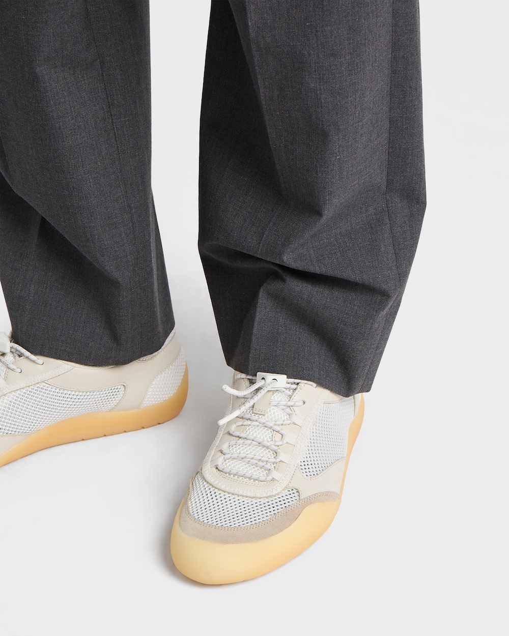 軽量で柔軟性があり、都会のリズムに合わせて設計されたスピードロックスニーカーは、好奇心旺盛で革新的な精神を体現しています。デザインは正確で機能的であり、メッシュアッパーにレザープロフィールを加えています。テクニカルコードのディテールがアウトドアのダイナミズムを呼び起こします。ラバーソールが、都市と自然の対話にインスパイアされた多用途のスタイルを完成させます。