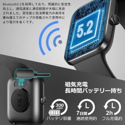 - 💌【便利な通知&多機能搭載】スマートウォッチ はBluetooth 5.2を採用しており、接続が非常に安定なさっております。従来の5.0より、通信速度が2倍、通信範囲が4倍に大幅に改良されました。着信、Line、SMS、Twitter、Facebook、Instagramなどのメッセージ通知はバイブレーションでお知らせされます。ランニング中、会議や運転中など不便な場合には、スマホを出さなくてすべての内容を手首で確認できます。運動中や打ち合わせ中など電話に出られない時は、画面を押して簡単に拒否なさることができます。また、歩数計、睡眠管理、音楽コントロール、目覚まし時計、水飲む通知、座りすぎ通知、運動モード、携帯を探す、腕上げ点灯、タイマー、ストップウォッチ、データ同期、女性生理管理など日常生活に実用的便利な機能を持っております。