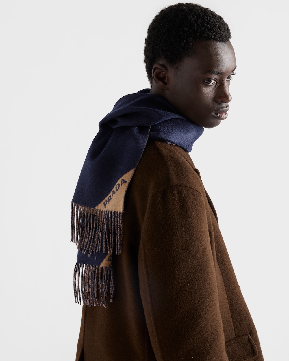 柔らかで暖かいカシミヤを使用した洗練されたスカーフ。コントラストカラーのリバーシブルデザイン。片面の両端には連なるジャカードロゴをあしらい、個性的なタッチを添えています。