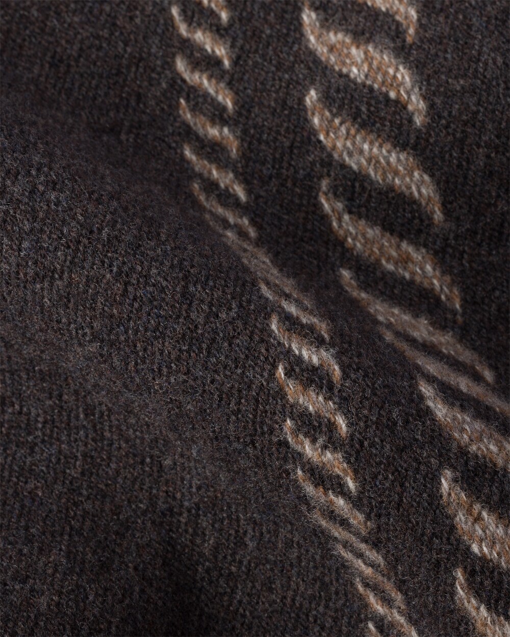 プラダのロゴを洗練された形で表現した、ウールとカシミヤ素材のジャカード編みスカーフ。