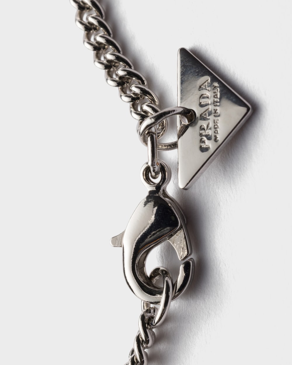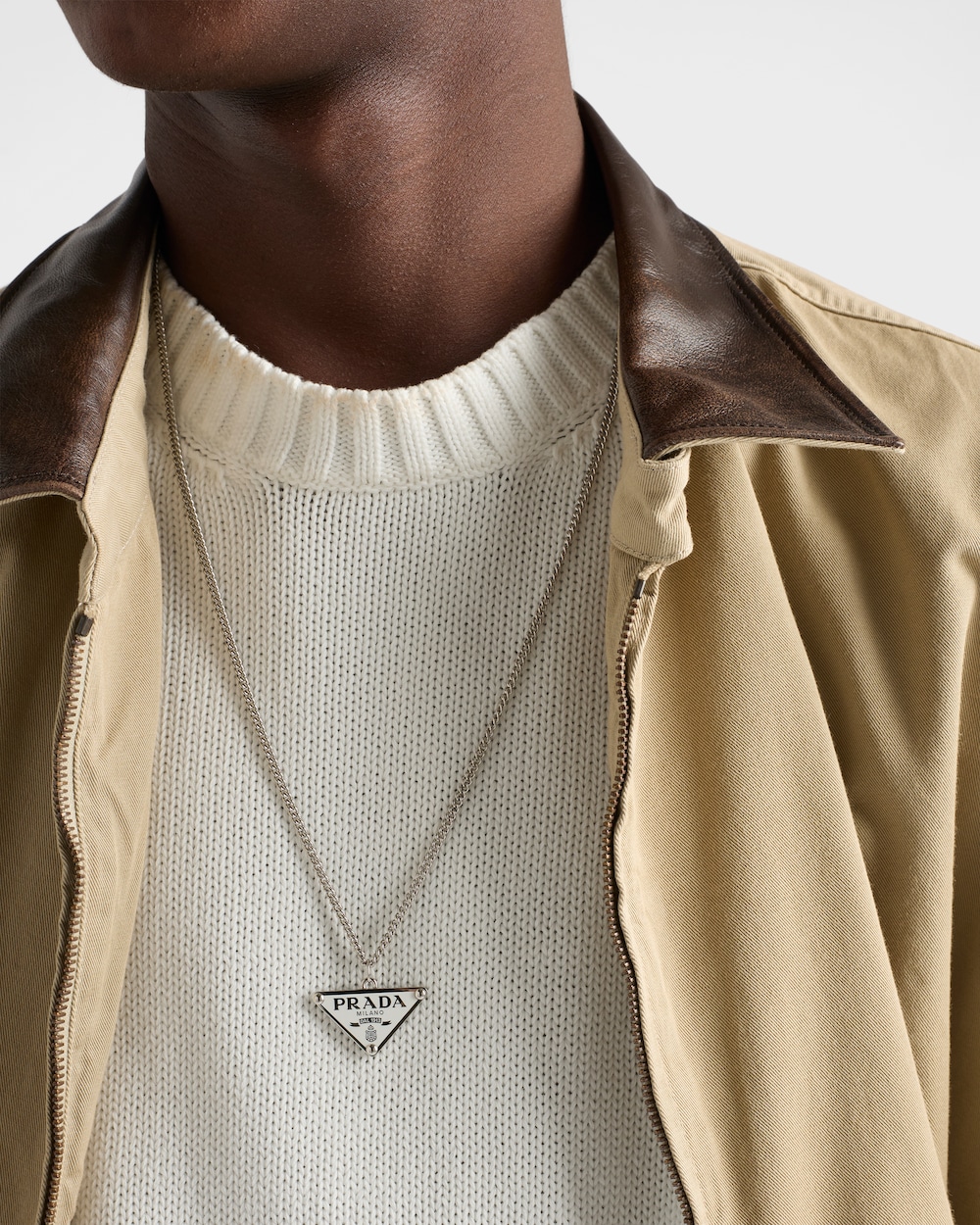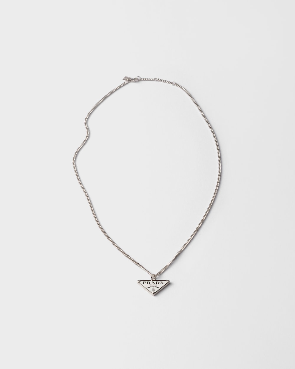 象徴的なエナメルメタルのトライアングルロゴが現代的なキャラクターを持つこのネックレスを飾ります。
