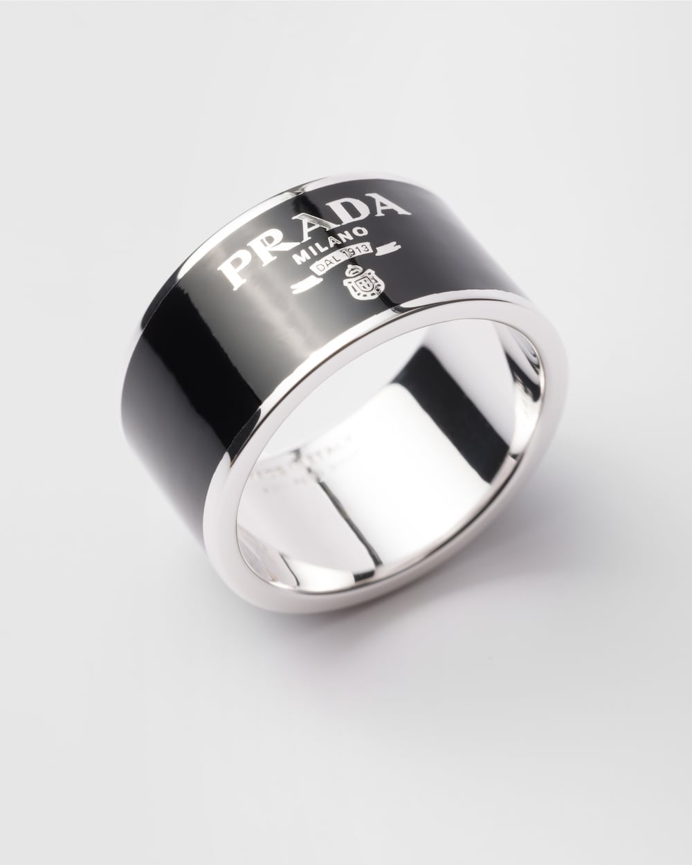 洗練されたエレガントなラインを描く、ワイドなバンドリング。エナメル仕上げのシルバー925を使用し、独特のレタリングロゴをあしらいました。