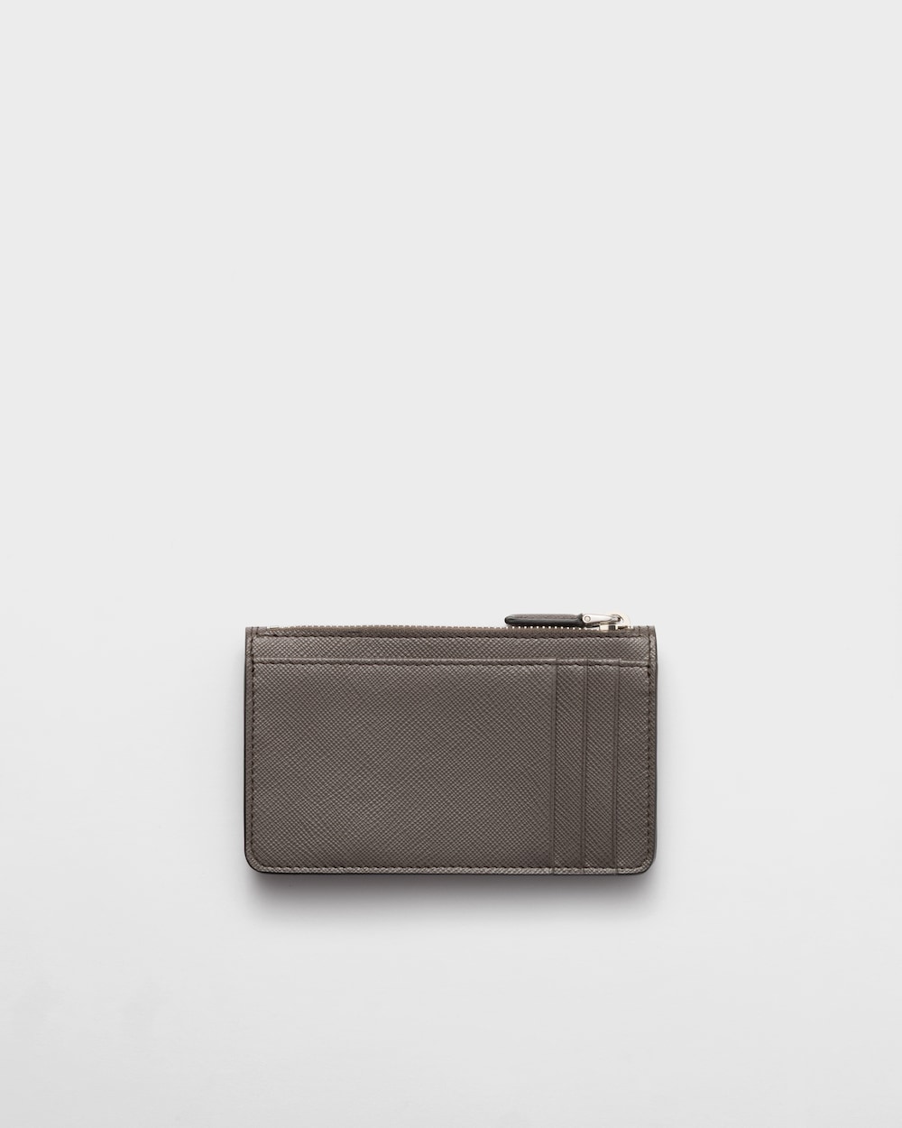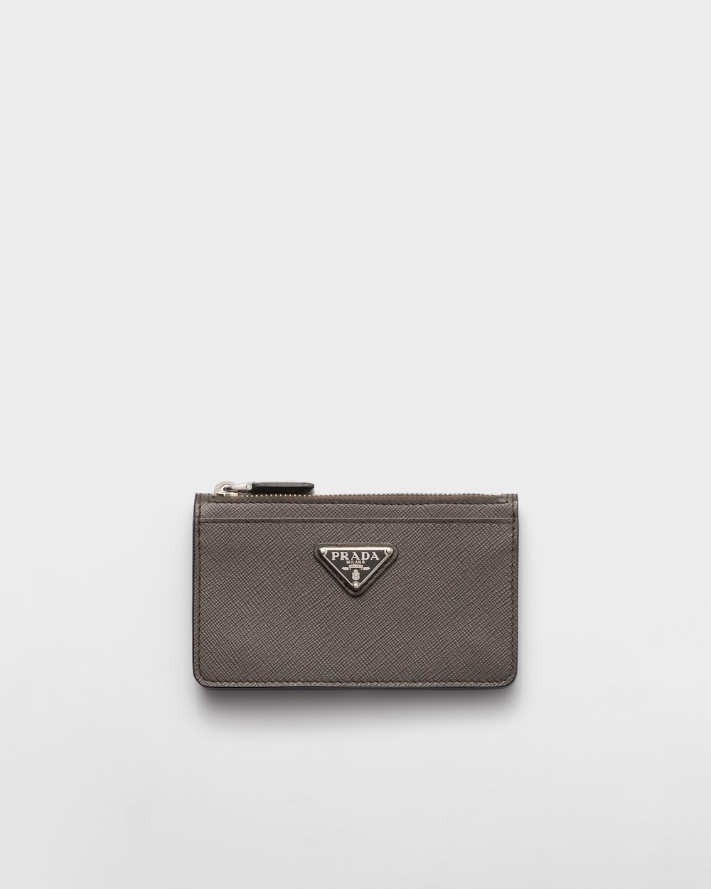 洗練されたデザインが印象的な「サフィアーノ」レザー(牛革)のカードケース。カードホルダー3個を備え、アイコニックなエナメルメタルのトライアングルロゴがあしらわれています。