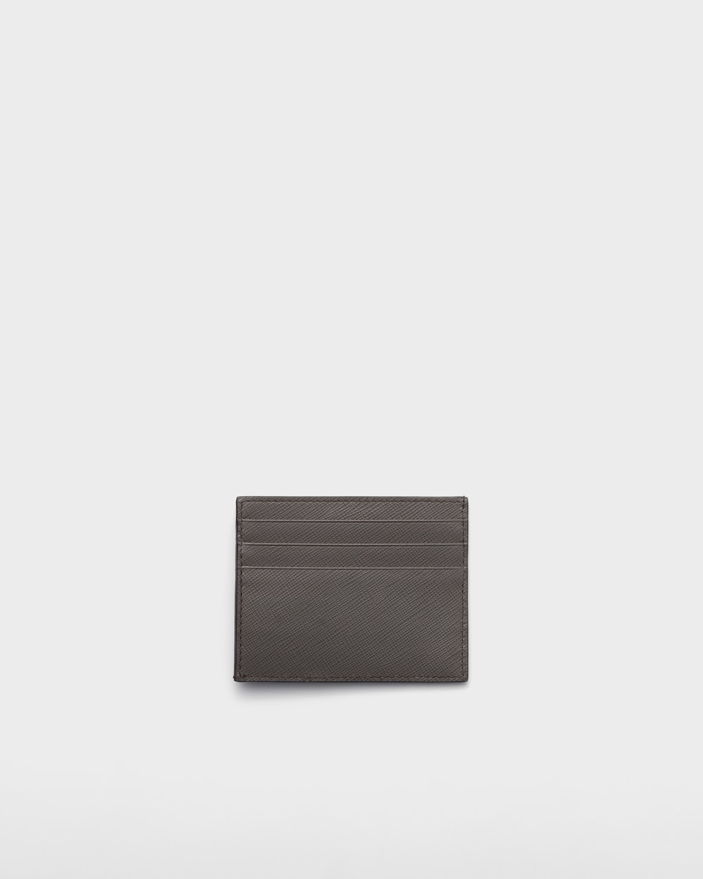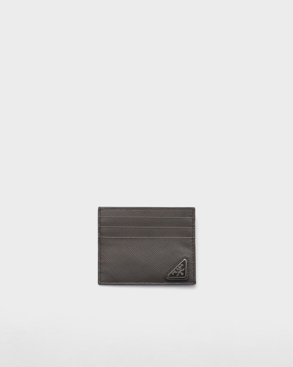 「サフィアーノ」レザー(牛革)のカードケース。カードホルダー6個。中央ポケット、ファブリックライニング、下隅にエナメルのPRADAトライアングルロゴがあしらわれています。