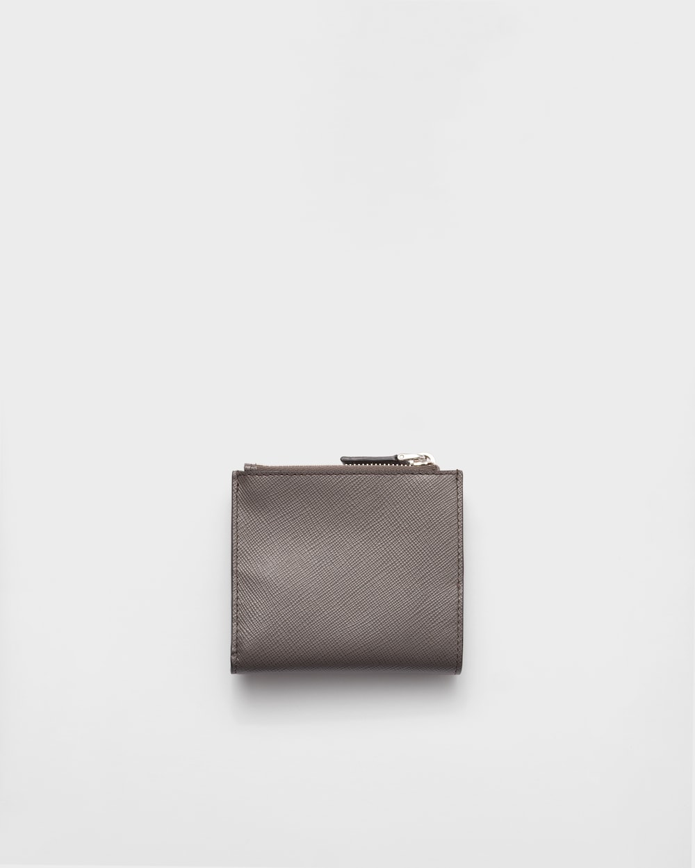 フロントにトライアングルロゴをあしらった財布。洗練されたラインと「サフィアーノ」レザー(牛革)のアイコニックな質感が特徴。内側にはポケットとコンパートメントを備えています。