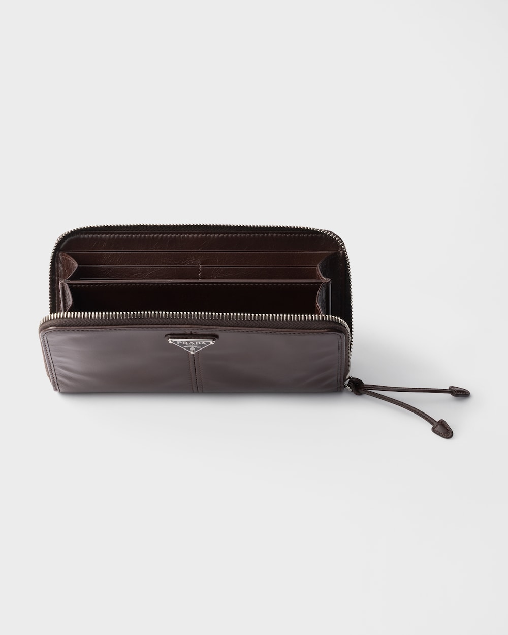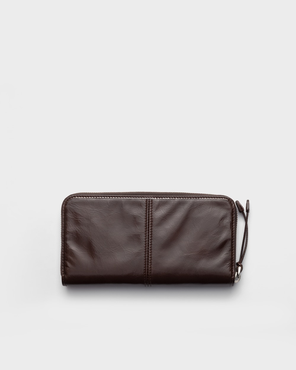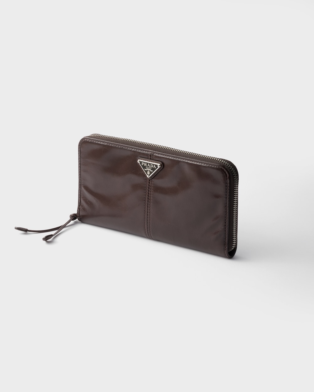 洗練されたラインとアイコニックな幾何学形が際立つ、機能的で収納力のある財布。光沢感のあるレザーを使用し、モダンで上品なスタイルに仕上げています。