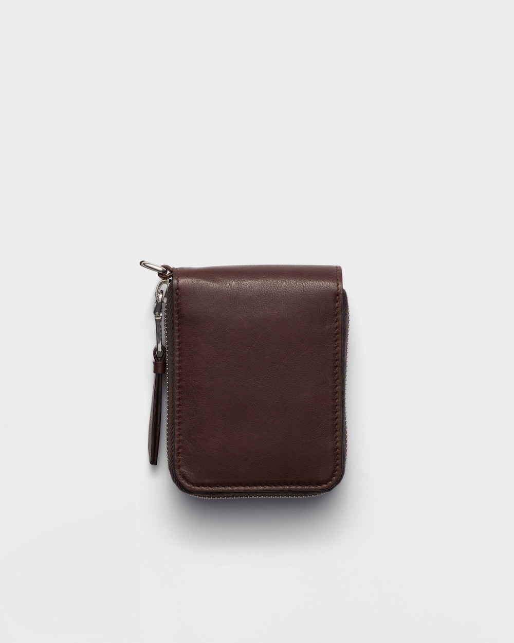 洗練された刺繍モチーフがナッパレザーの財布を彩り、トライアングルロゴが独自のアクセントを添えています。
