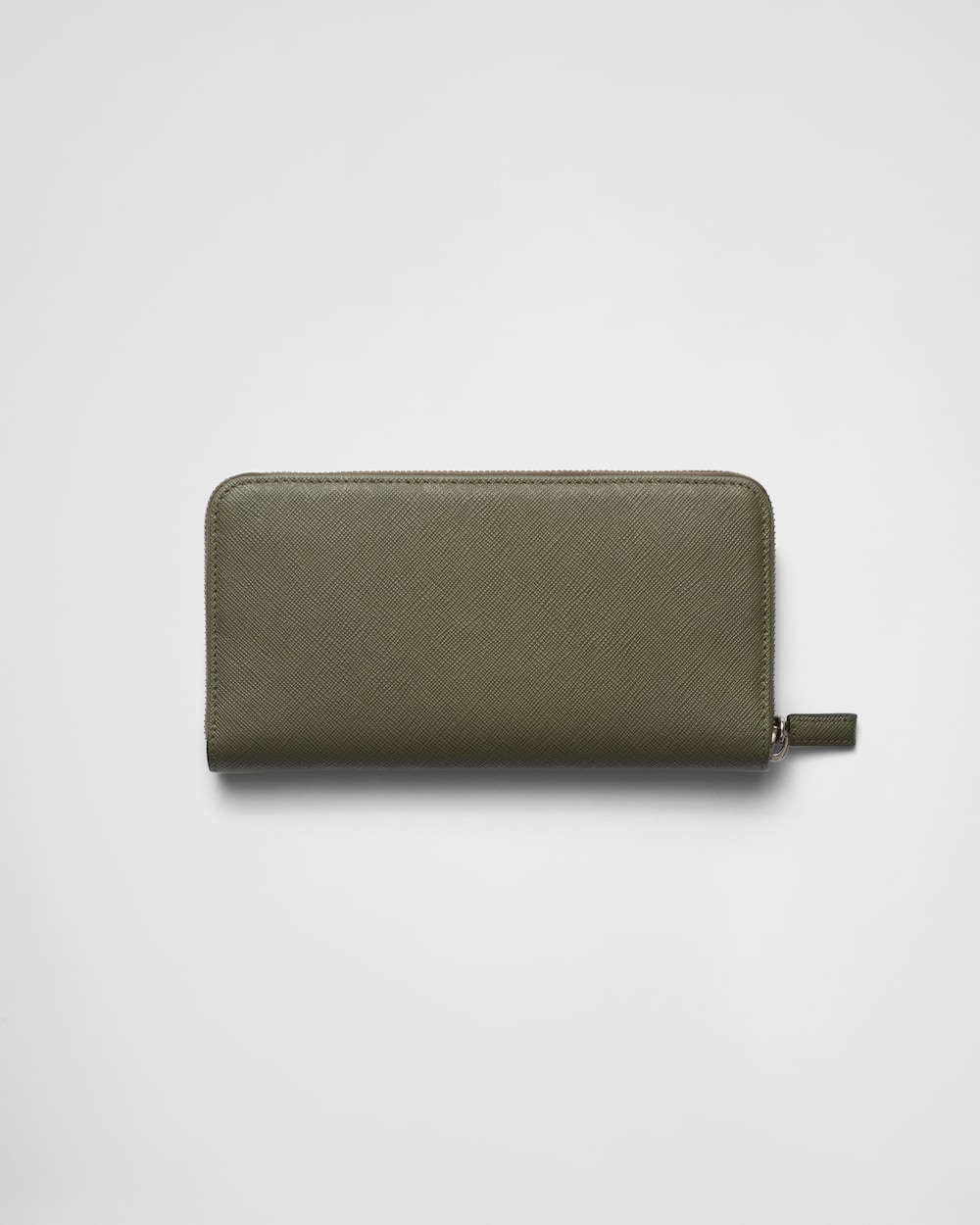 エナメルメタルのトライアングルロゴをあしらった、エレガントな「サフィアーノ」レザー(牛革)のファスナー付財布。内側に収納部分3個、ファスナー付ポケット1個、カードホルダー12個を備えています。