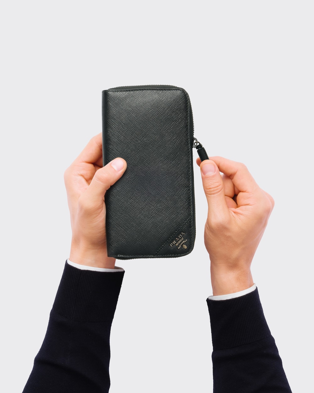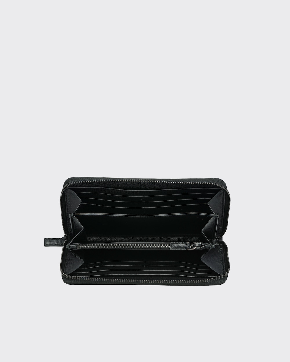 レタリングロゴをあしらいエレガントな印象に仕上げた「サフィアーノ」レザーのジップアラウンド長財布。札入れ3個にファスナー付小銭入れ1個、カードホルダー12個、ドキュメントポケットが3個を備え、収納力にも優れたマストハブアイテム。