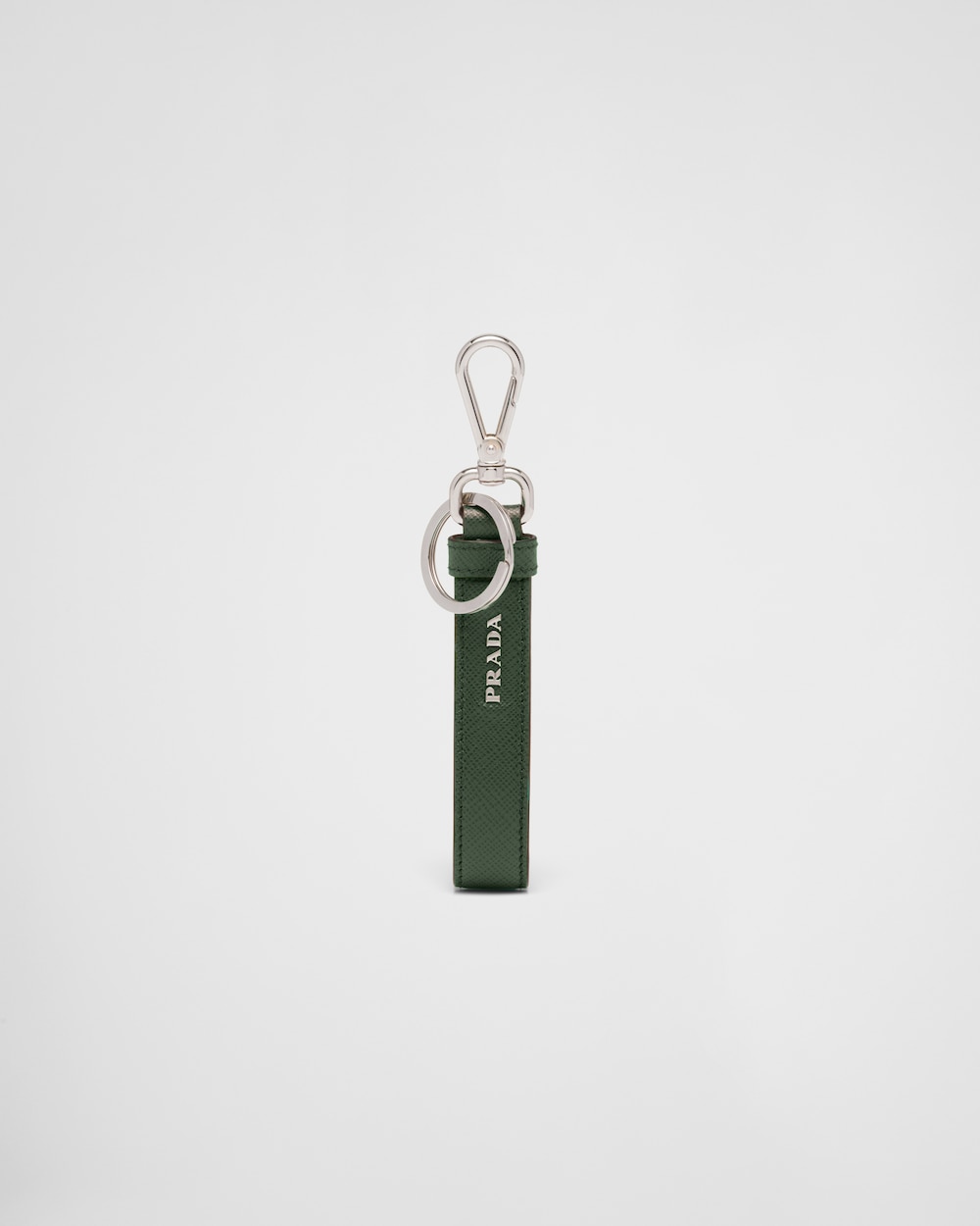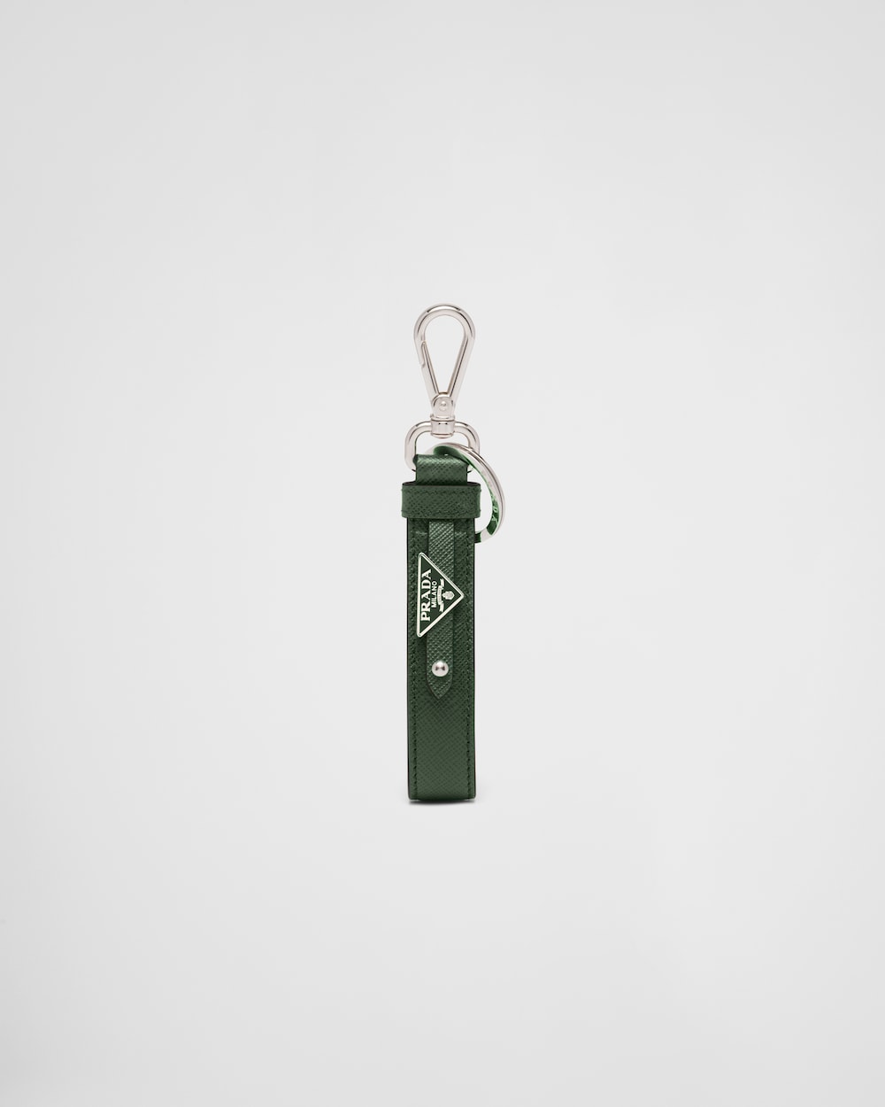 取り外し可能なエナメルメタルのトライアングルロゴがアイコニックな魅力を放つ、「サフィアーノ」レザー(牛革)のキーリング。文字やチャームを交換できるデザイン。お客様だけのオリジナルのアクセサリーとして対応可能なプラダ店舗にてカスタマイズを承ります。