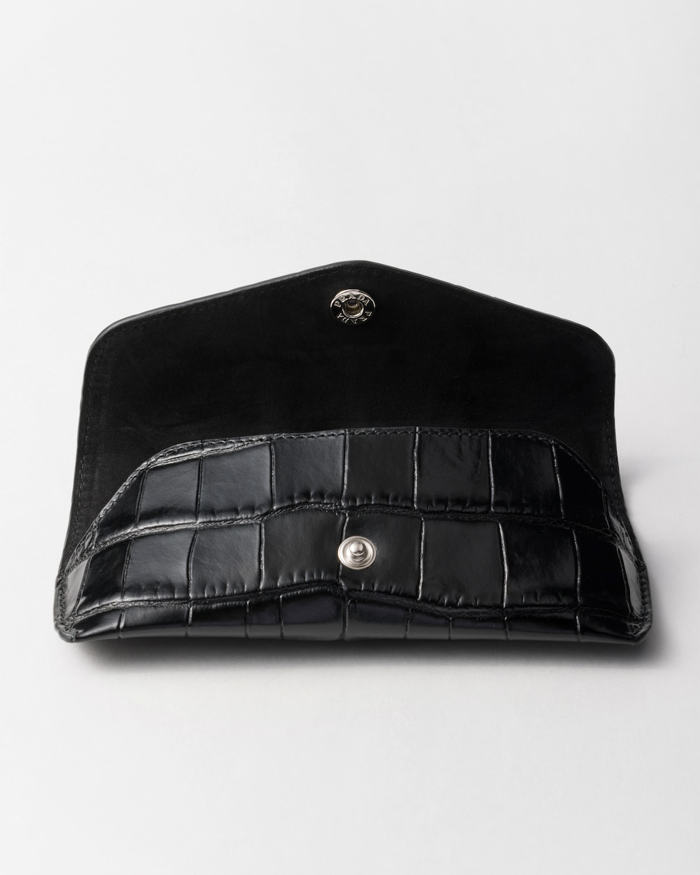 エレガントで気品のあるアイウェアケース。艷やかな仕上がりのクロコダイルレザー(ワニ革)がラグジュアリー感を醸し出しています。洗練されたディテールと上質のディテールを掛け合わせた、上品で斬新なデザイン。