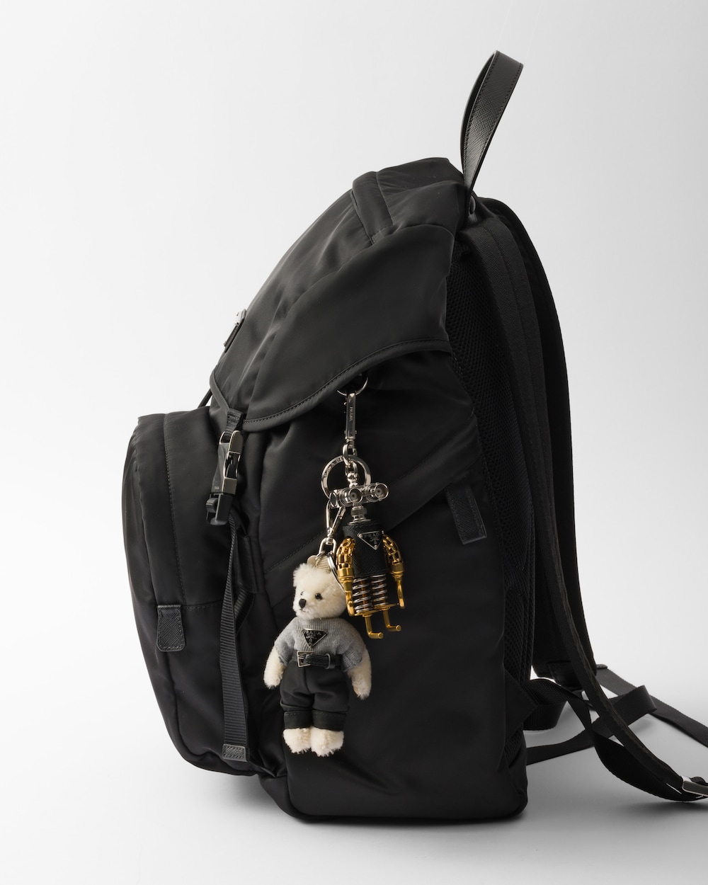 バッグのアクセサリーにぴったりな、遊び心のあるふわふわのチャーム。プラダのデザインコードがデザインに取り入れられており、現代的なスタイルのシンボルとして活躍します。