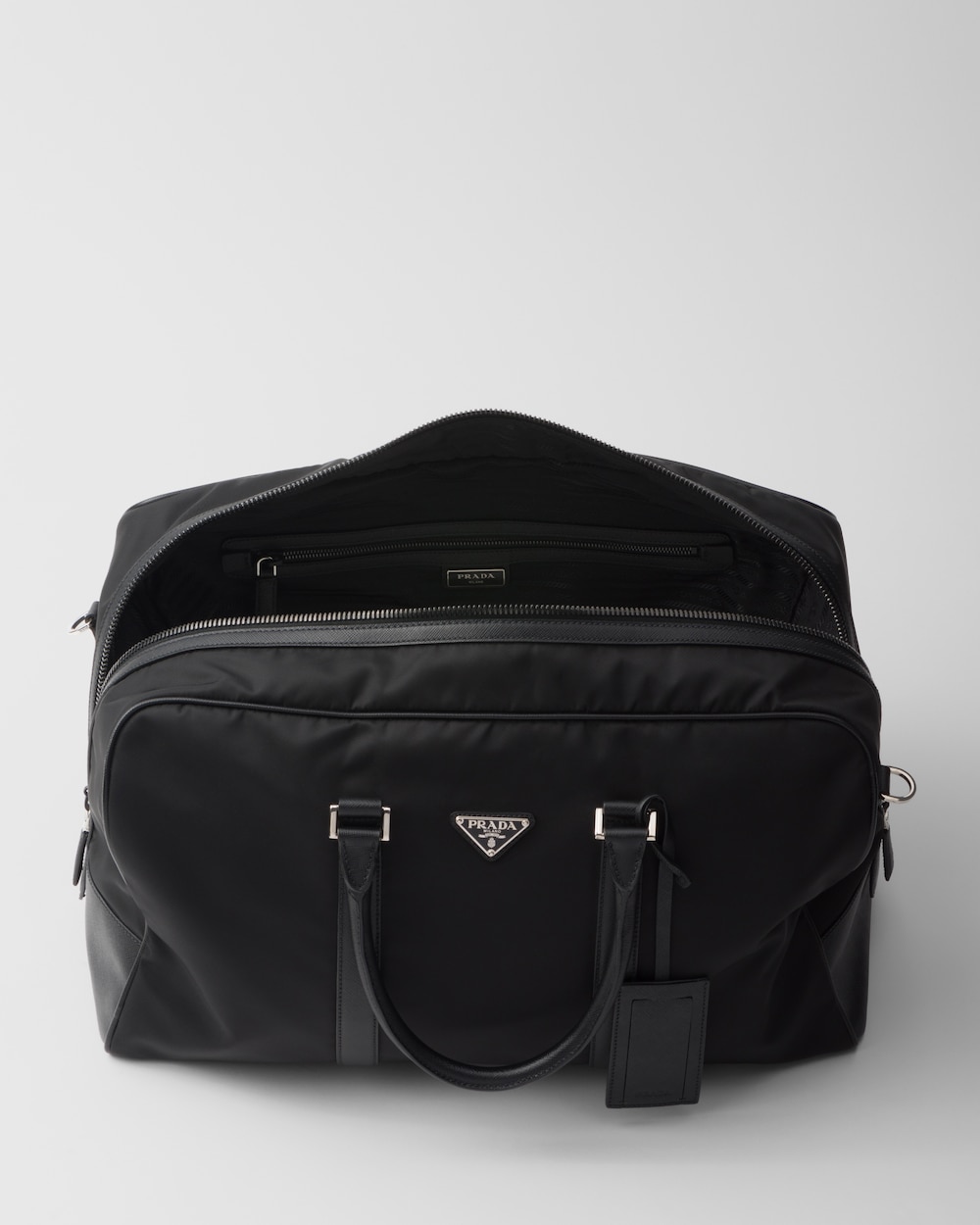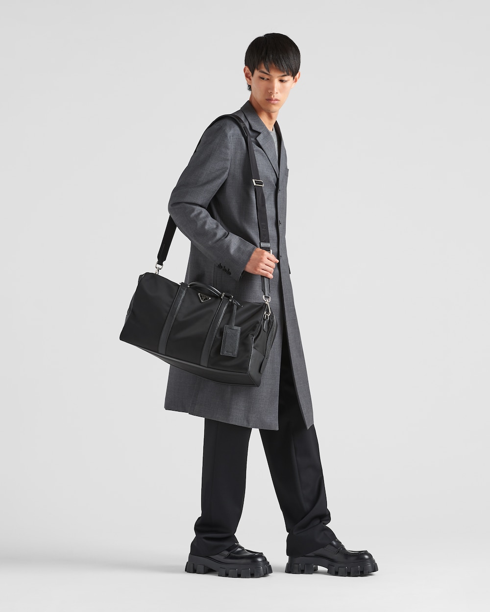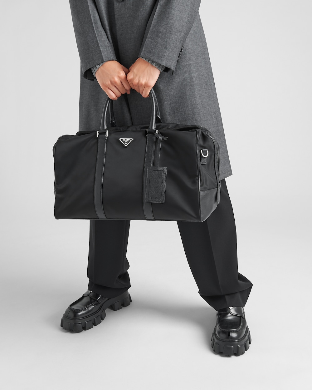 「サフィアーノ」レザー(牛革)のトリムが現代的なエレガンスを醸し出すアクセントになったRe-Nylonのダッフルバッグ。便利な取り外し可能なショルダーストラップを備え、アイコニックなメタルのトライアングルロゴがあしらわれています。 サスティナブルなお手入れ方法:製品の風合いを保つため、また環境への負荷を軽減するために、製品を頻繁にクリーニングすることを推奨しておりません。使用後は風通しの良い場所で陰干ししていただき、クリーニングが必要な場合は環境に配慮したクリーニング店でドライクリーニングをすることをおすすめします。