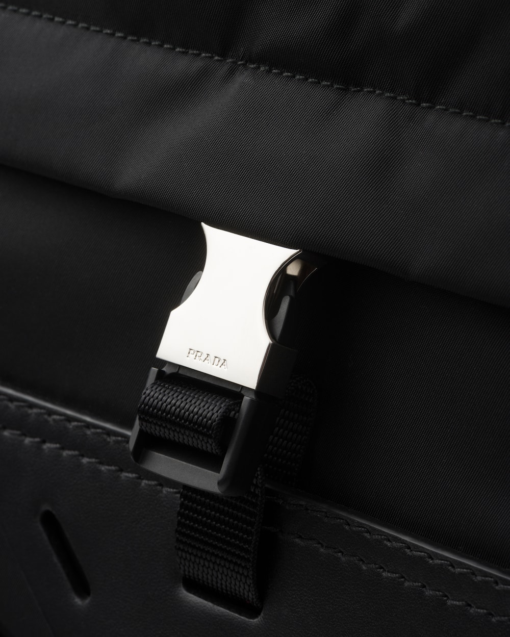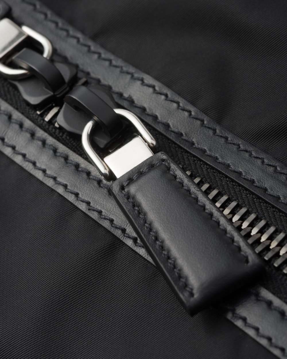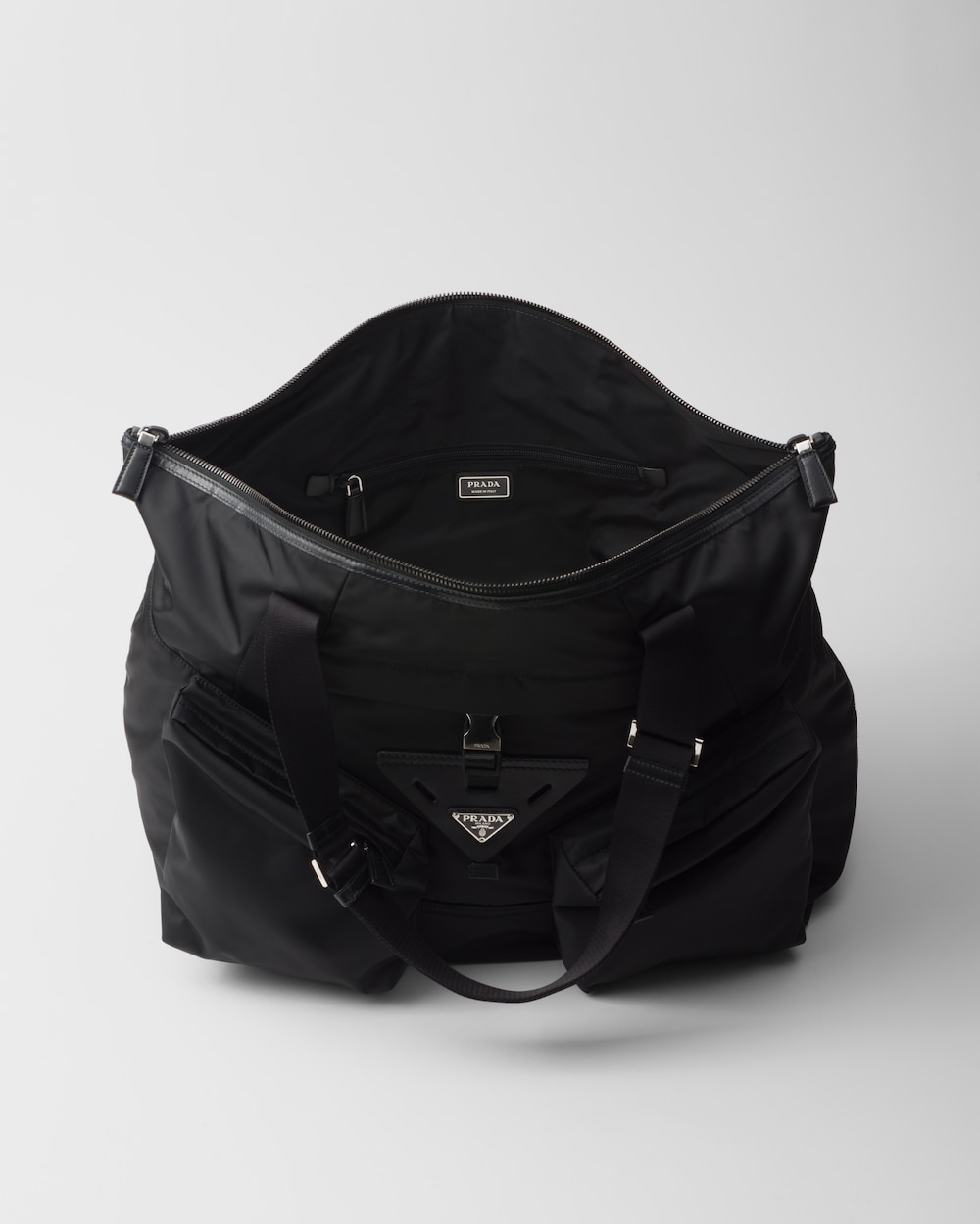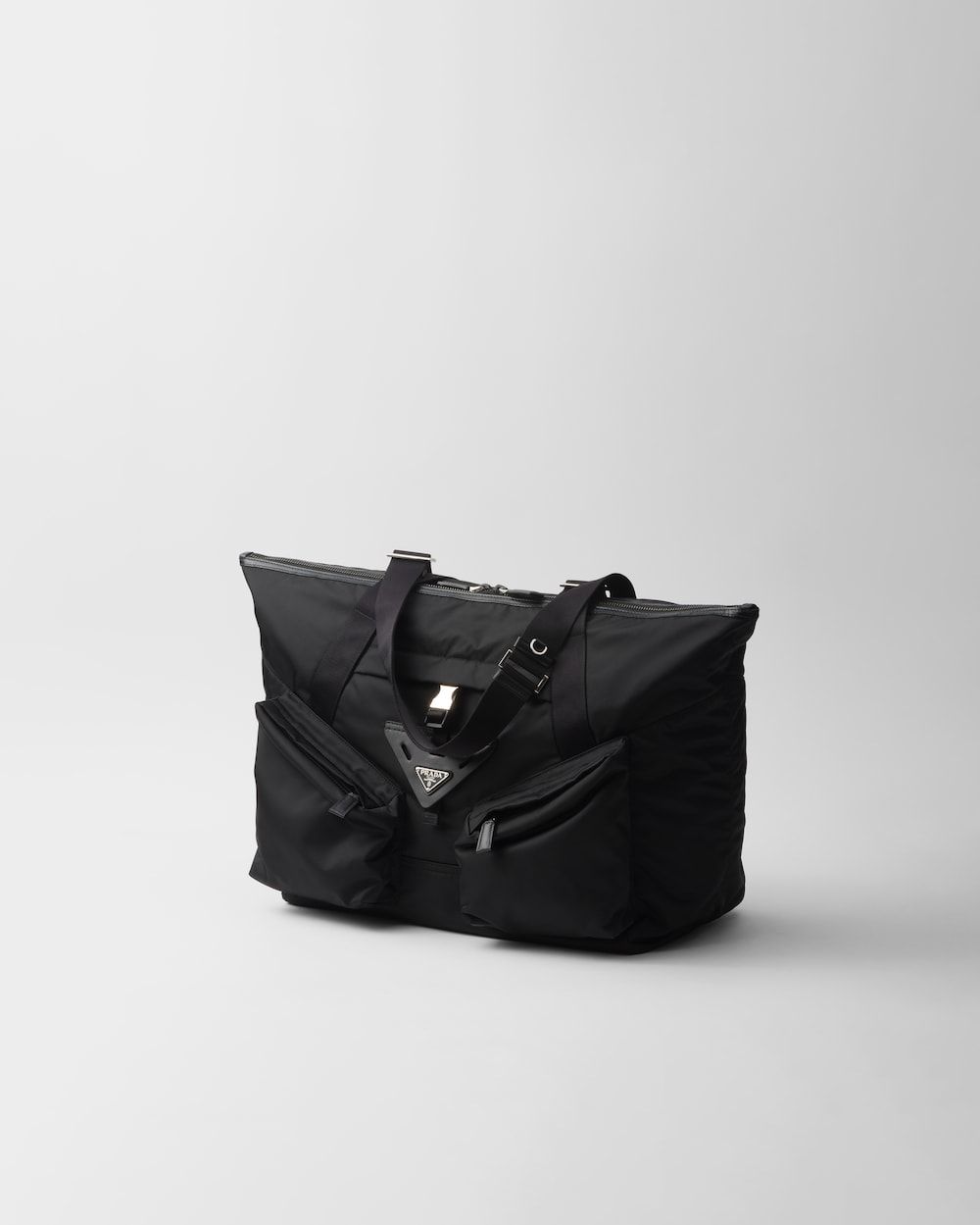 アーキテクチュアルなボリューム感と力強い幾何学的なラインがシルエットを引き立てるトラベルバッグ。審美性と機能性が融合したアイテム。調節可能なハンドルを備えた収納力のあるデザイン。大きなユーティリティスタイルのサイドポケット、サイドリリースバックル付センターポケットを配し、アイコニックなエナメルメタルのトライアングルロゴを飾りました。シャープですっきりとした幾何学的なフォルムが、柔らかな仕上がりのRe-Nylonとの絶妙なバランスを生み出し、レザーのトリムとともに汎用性とカジュアルなタッチを演出する、現代的なバッグ。 サスティナブルなお手入れ方法:製品の風合いを保つため、また環境への負荷を軽減するために、製品を頻繁にクリーニングすることを推奨しておりません。使用後は風通しの良い場所で陰干ししていただき、クリーニングが必要な場合は環境に配慮したクリーニング店でドライクリーニングをすることをおすすめします。