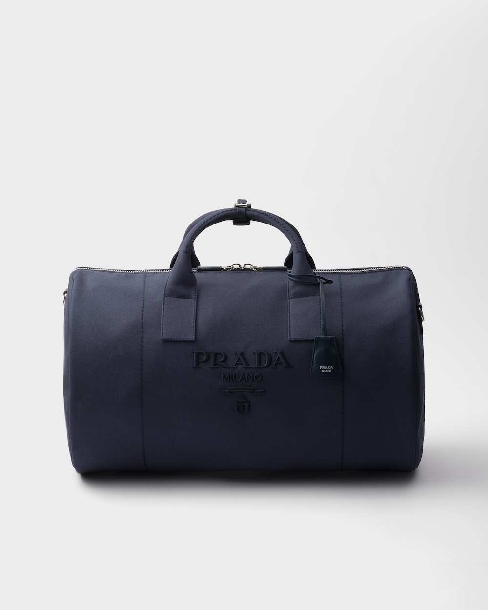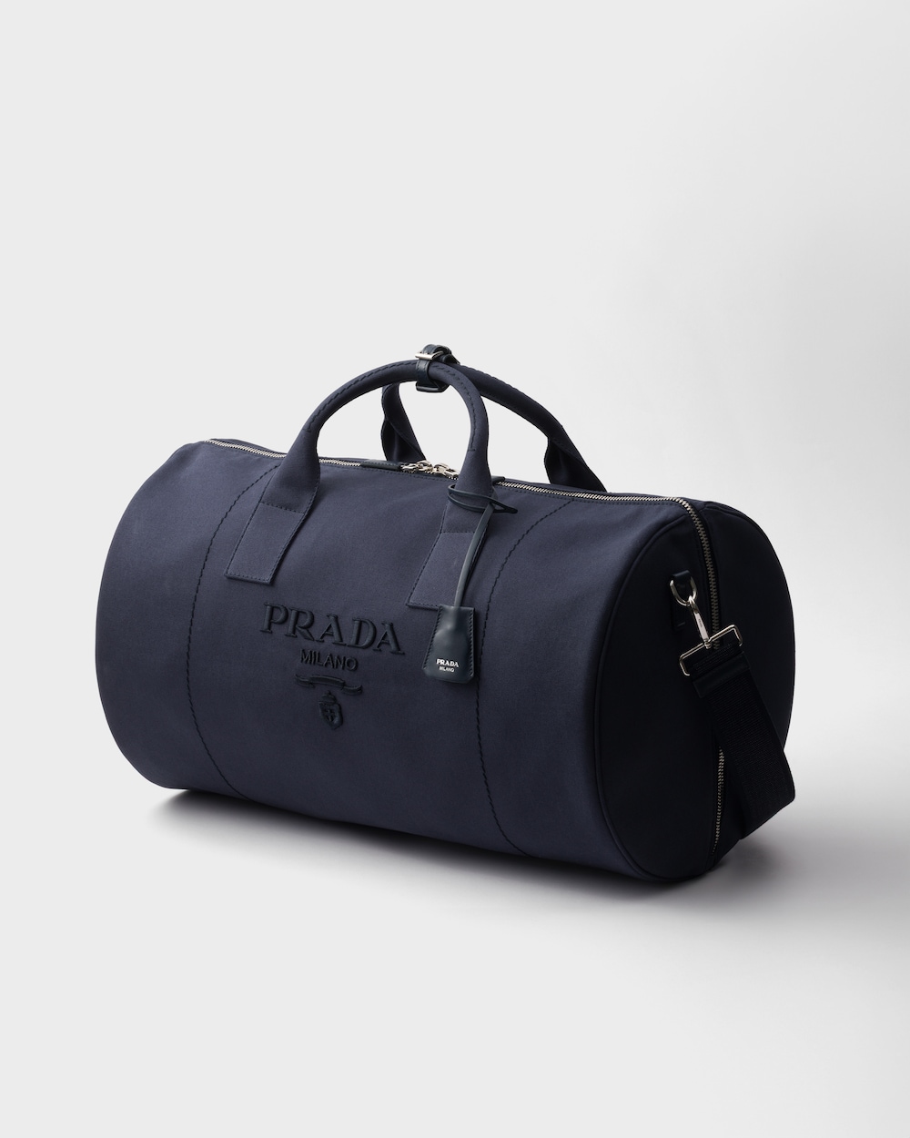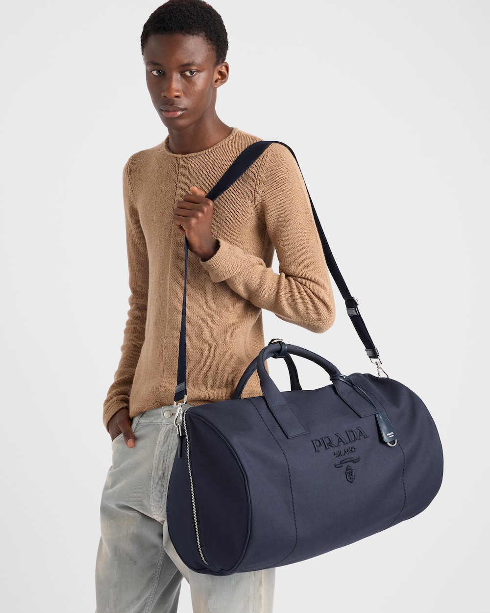キャンバスを使用した軽やかなデザインのダッフルバッグ。スポーティなスタイルを洗練されたレザーのディテールが引き立てています。取り外し可能なショルダーストラップが付いた、汎用性の高い収納力のあるデザイン。同色のロゴ刺繍がプラダらしいアクセントを添えています。