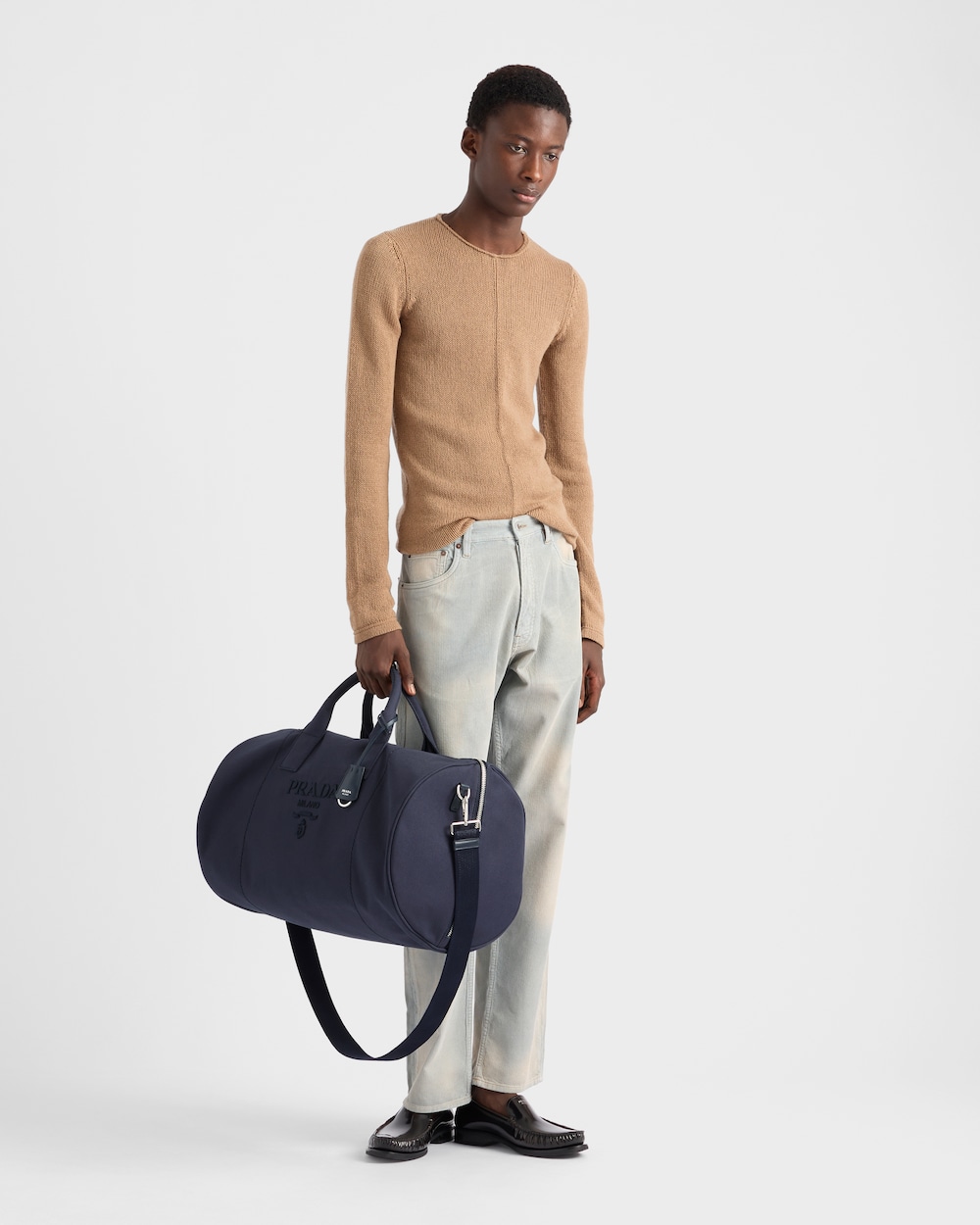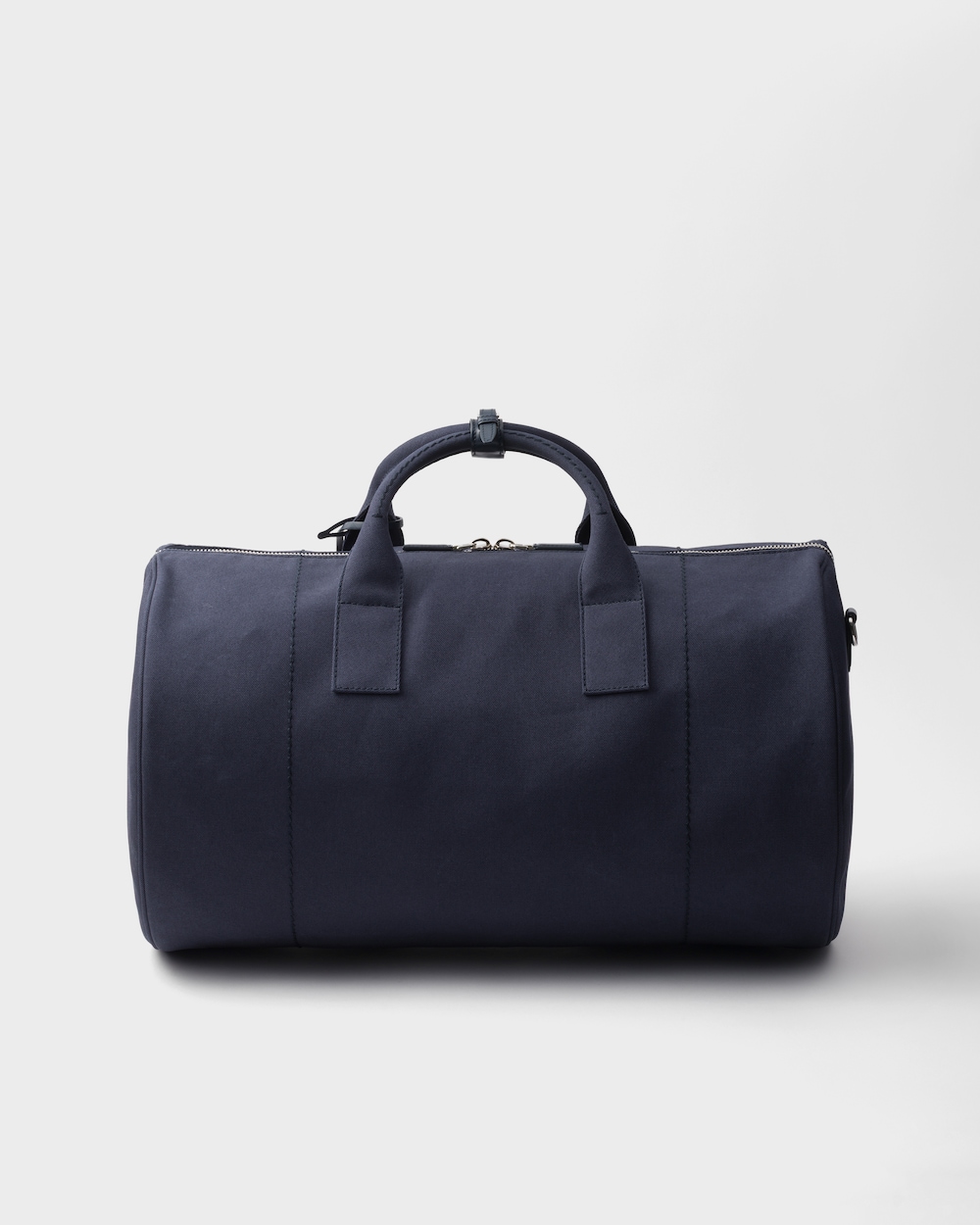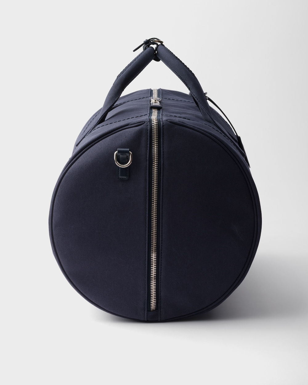キャンバスを使用した軽やかなデザインのダッフルバッグ。スポーティなスタイルを洗練されたレザーのディテールが引き立てています。取り外し可能なショルダーストラップが付いた、汎用性の高い収納力のあるデザイン。同色のロゴ刺繍がプラダらしいアクセントを添えています。