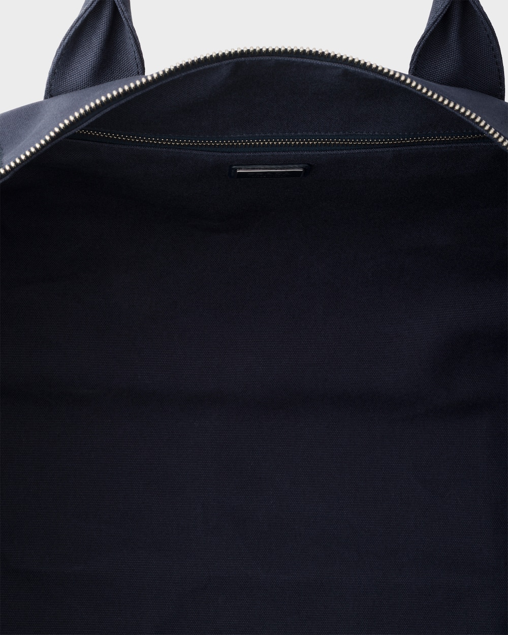 - キャンバスの内張りにファスナー付ポケットとパッチポケット