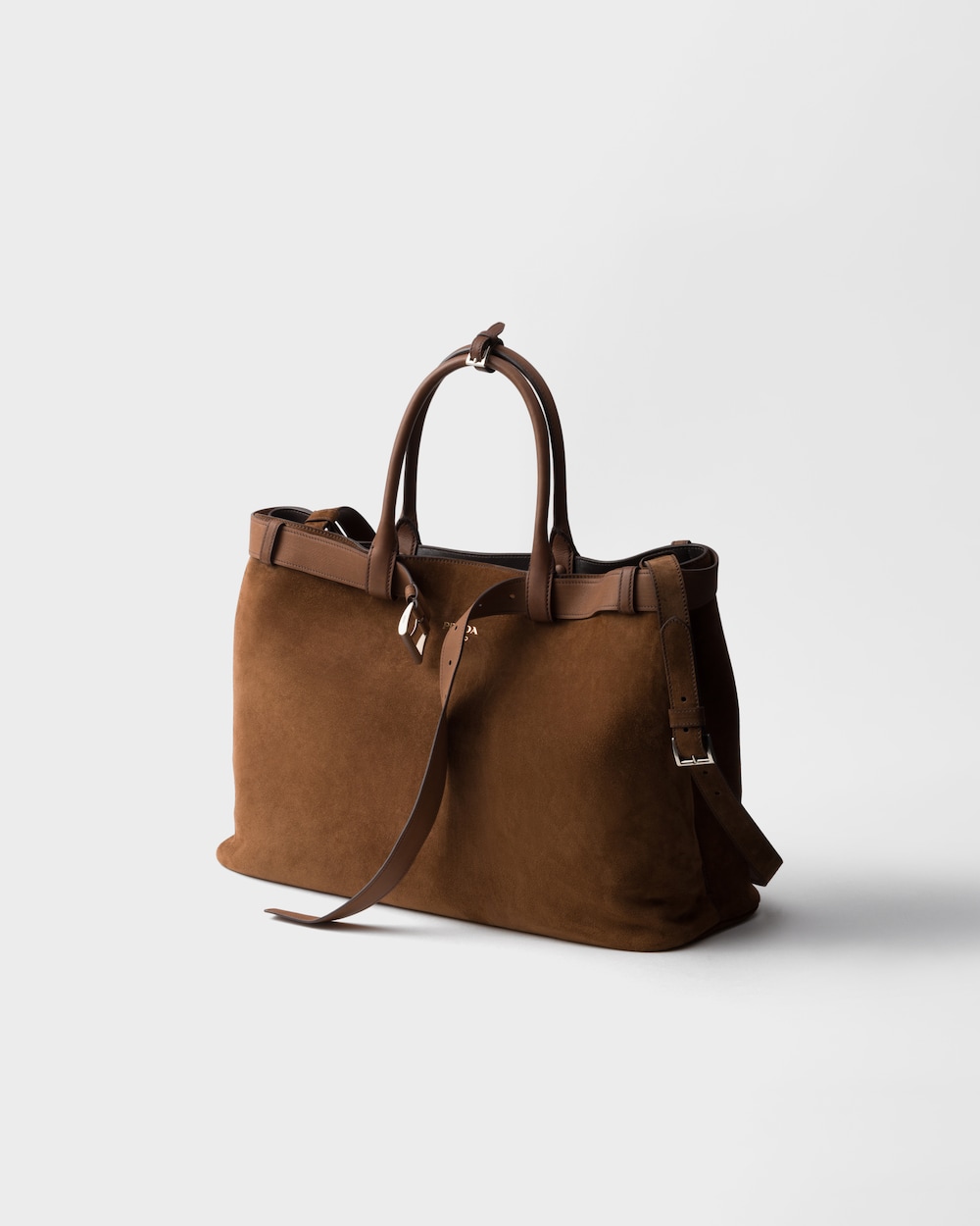 洗練されたラインのモダンなシルエットが目を引くプラダ バックル バッグ。シンプルさとディテール、機能性とエレガンスが融合したデザインに、プラダの二元性の美学が表現されています。スエードの柔らかく上品なタッチが際立つオーバーサイズのシルエットに、アイコニックなバックル付ベルトをあしらいました。