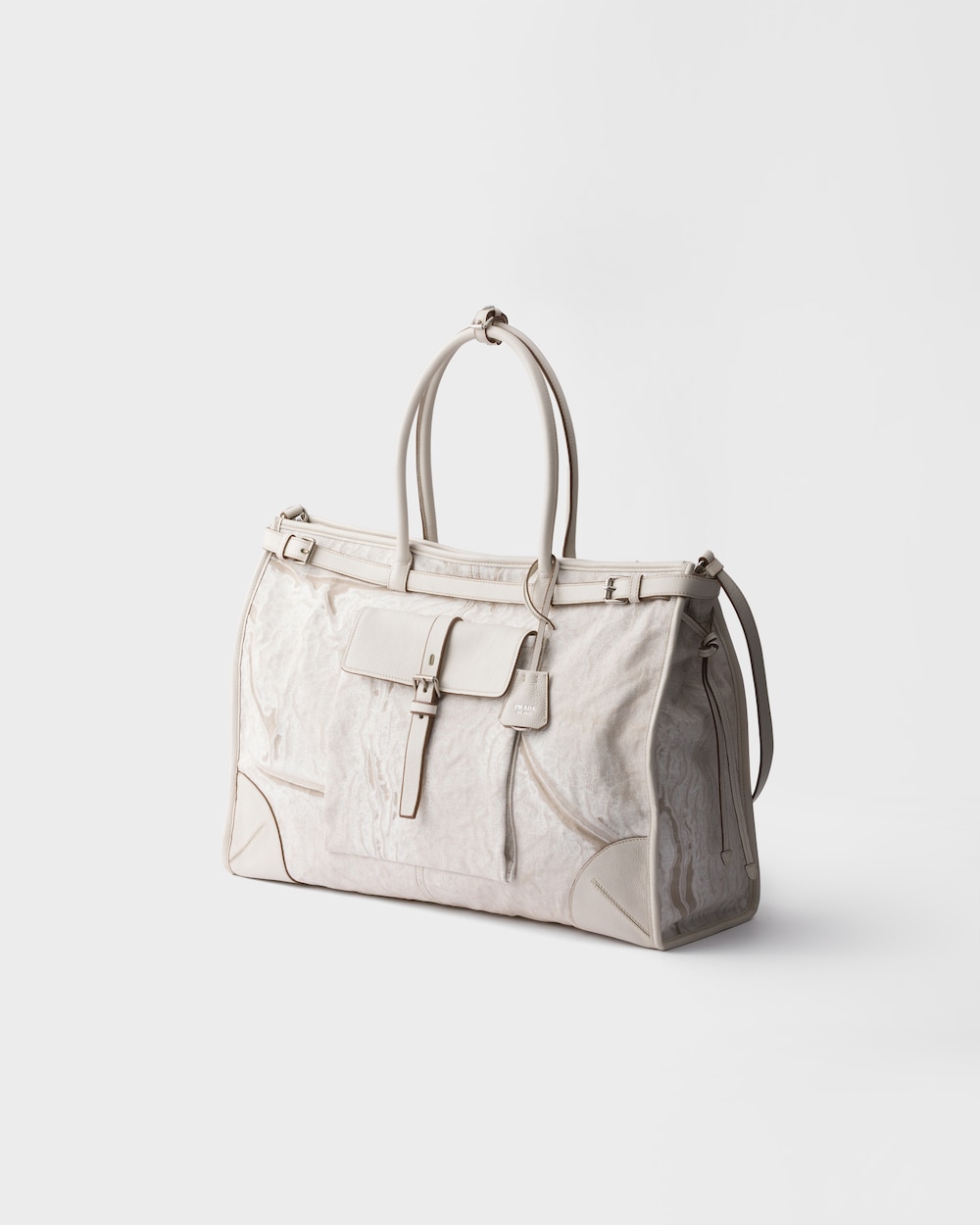 プラダ ボニー バッグは、プリントリネンとレザーの洗練された組み合わせでアクセサリーの現代的なエレガンスを再解釈し、自然な質感と構造的なディテールがバランスよく調和しています。特徴的で洗練された幾何学的なシルエットが、アーキテクチュアルな厳格さと日常の機能性を融合させています。フロントのフラップポケットに配されたストラップとバックル、メタルパーツ、そしてサイドのレース使いといったアーカイブ要素は、ブランドの歴史的なデザイン言語を象徴するアイコニックなディテールです。レザーのハンドルとディテールがデザインの洗練された印象を際立たせ、調節・取り外し可能なショルダーストラップがさまざまな使い方を可能にし、さまざまなシーンに容易に対応します。