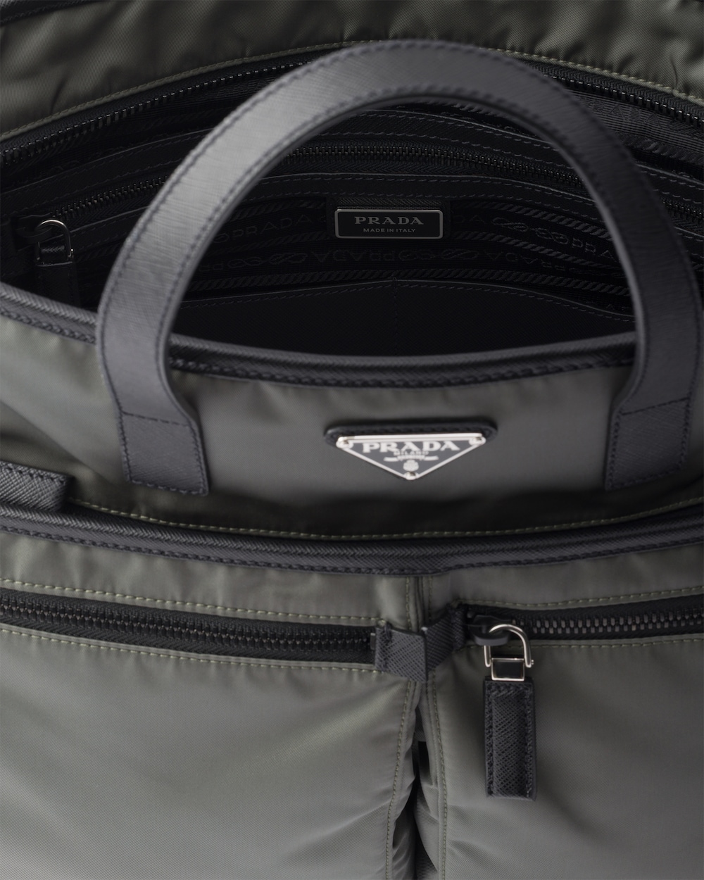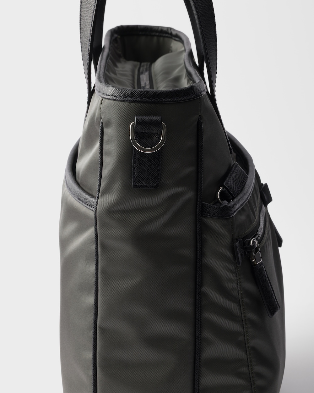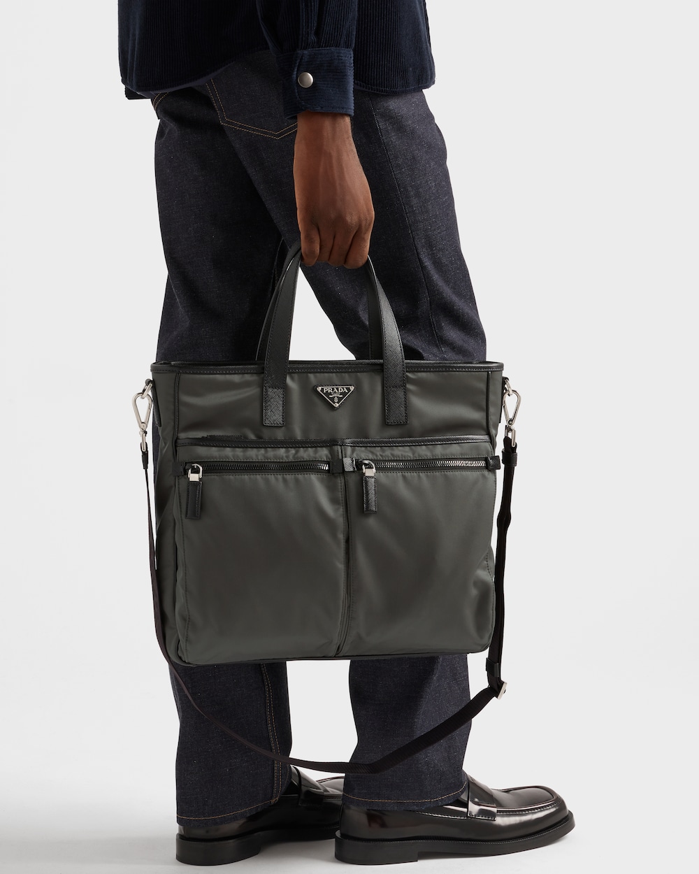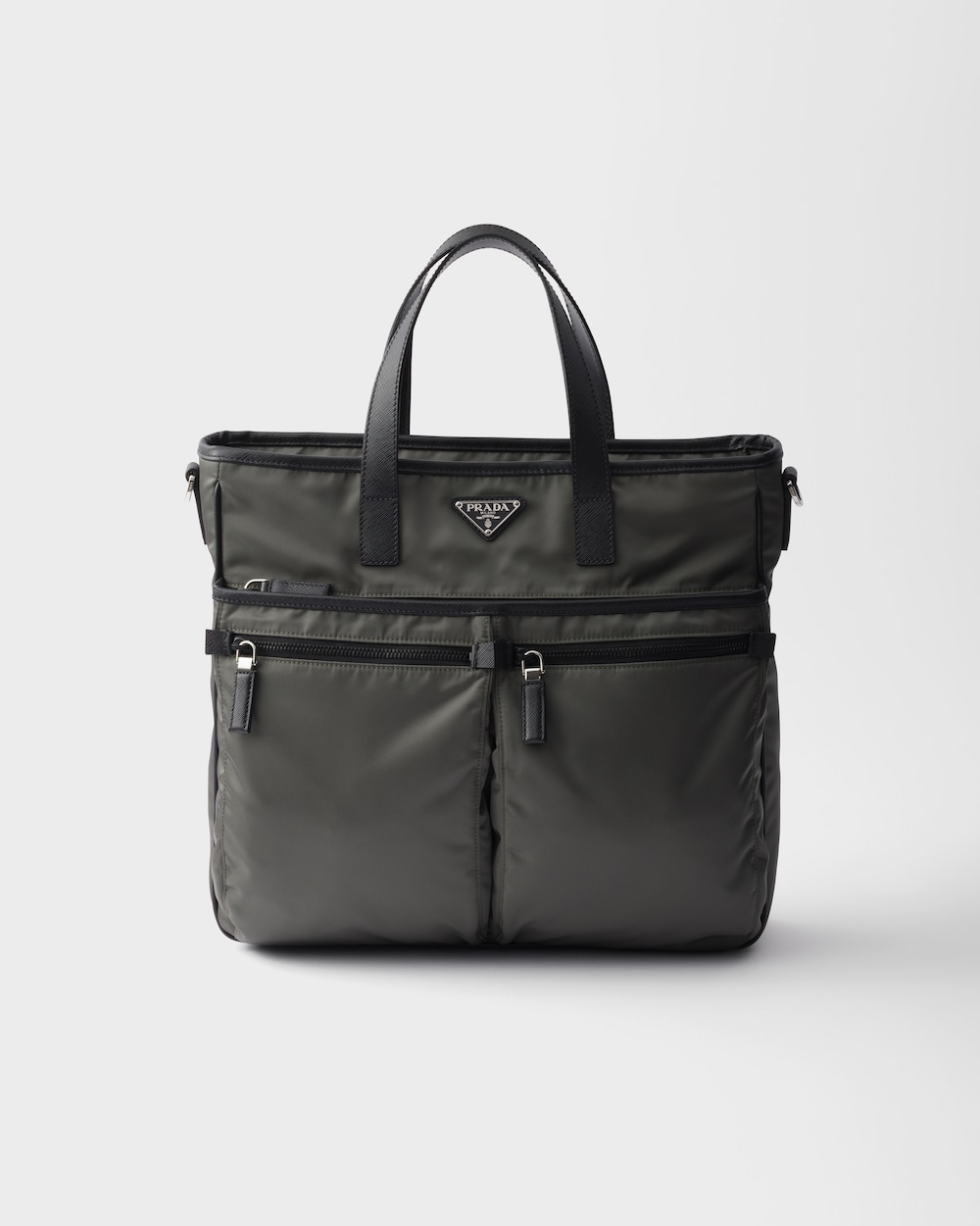 Re-Nylonの機能性と「サフィアーノ」レザー(牛革)の洗練が調和を奏でる、コンテンポラリーなスタイルのトートバッグ。収納力のあるシルエットに、ファスナー付外ポケットや取り外し可能なショルダーストラップなど、実用的な要素が際立つエレガントなディテールをミックス。エナメルメタルのトライアングルロゴをあしらい、汎用性とモダンな魅力のバランスが絶妙なデザイン。 サスティナブルなお手入れ方法:製品の風合いを保つため、また環境への負荷を軽減するために、製品を頻繁にクリーニングすることを推奨しておりません。使用後は風通しの良い場所で陰干ししていただき、クリーニングが必要な場合は環境に配慮したクリーニング店でドライクリーニングをすることをおすすめします。