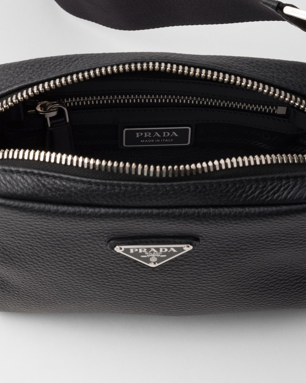 かっちりとした造りのシルエットが洗練されたラインを描くレザー ショルダーバッグ。ファスナー付のコンパクトなデザインにアイコニックなトライアングルロゴがあしらわれています。