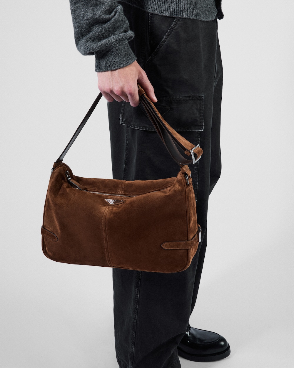 洗練されたシルエットにエレガントなストラップをあしらった、汎用性の高いモダンなバッグ。上品なスエードのアクセントで柔らかなラインを強調したデザインに、プラダを象徴するトライアングルロゴをあしらいました。