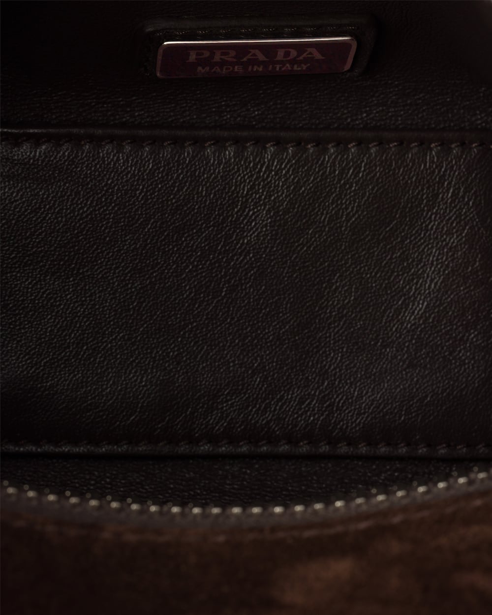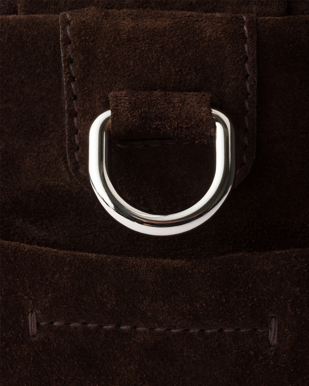 ミニマルなラインと上品なディテールがモダンなデザインを引き立てるバッグ。ベルベットのようなスエードの質感が際立つ柔らかなシルエットに、レタリングロゴを飾ったデザイン。