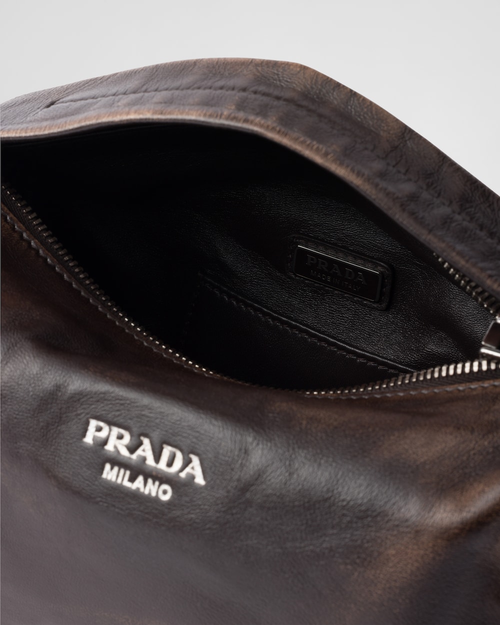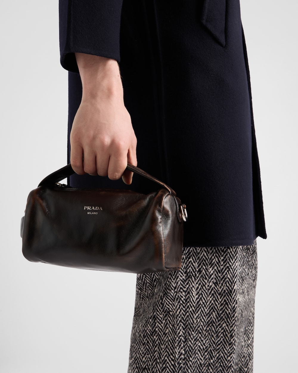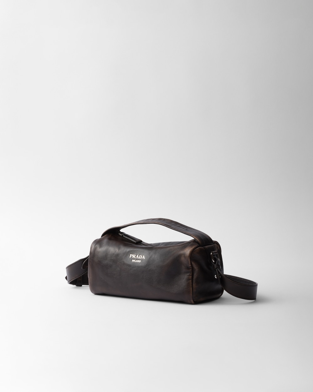 ヴィンテージ感のあるフォルムとディテールに着想を得て、都会的なスタイルにミニマルなタッチを絶妙にブレンドしたスタイリッシュでコンパクトなバッグ。ナッパレザー(羊革)にダメージ加工を施して柔らかな独特の表情に仕上げ、メタルのレタリングロゴをあしらいました。
