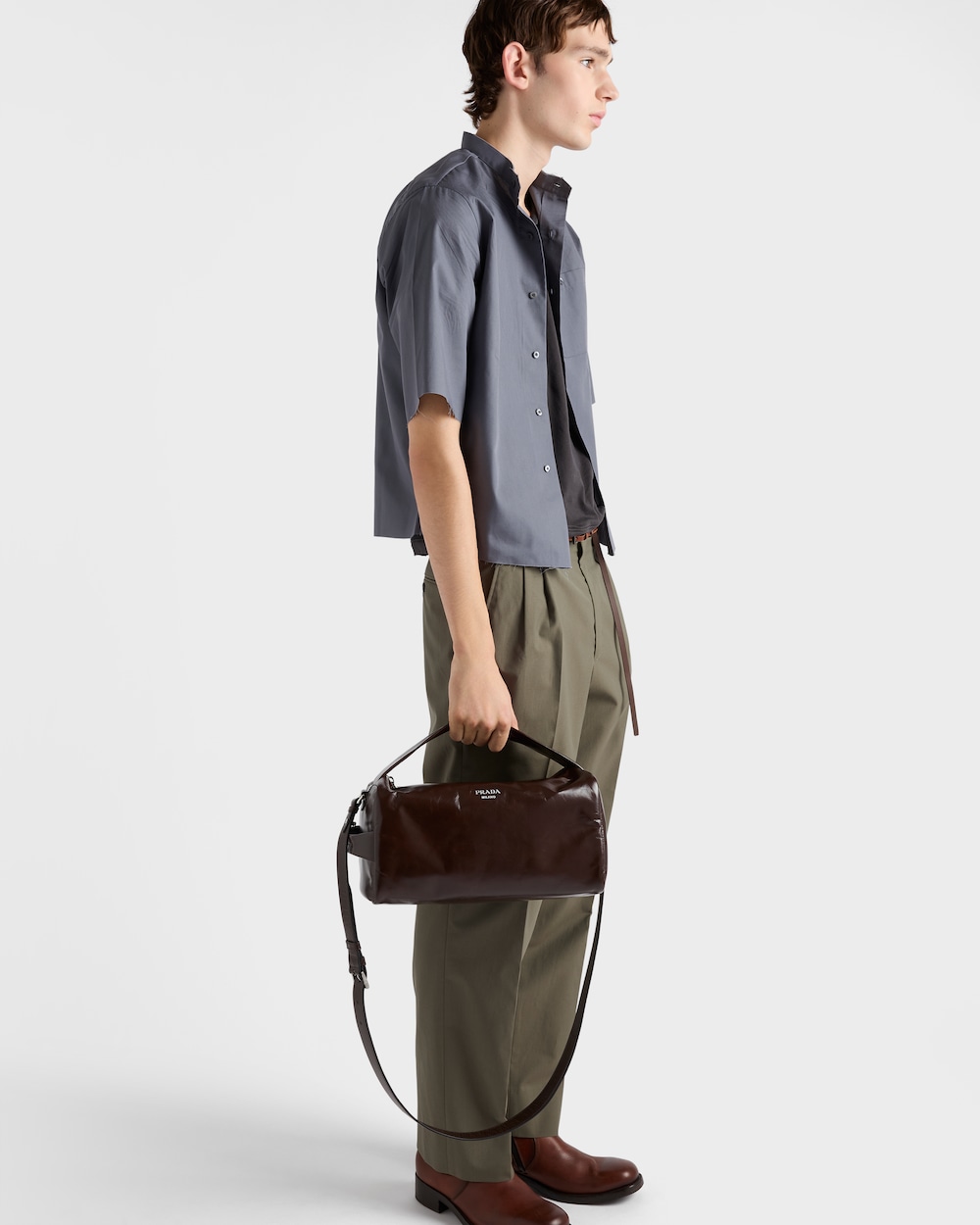 この広々とした使い勝手の良いバッグは、モダンなデザインで、ミニマルなラインと洗練されたディテールが際立っています。光沢のあるレザー仕上げがアクセサリーの魅力を引き立てます。ハンドルとショルダーストラップが付属しており、さまざまなスタイルでの使い方が可能です。