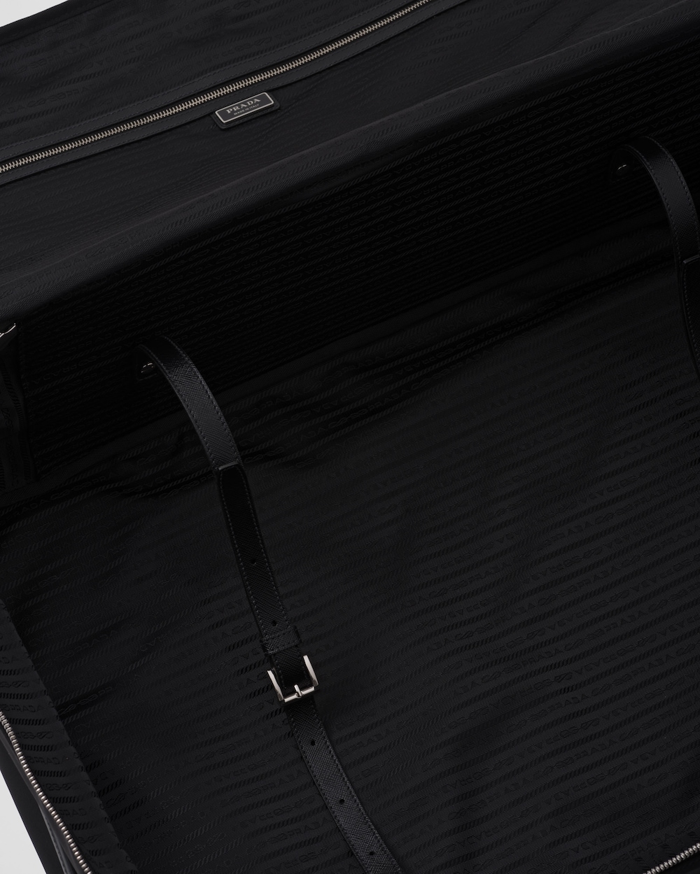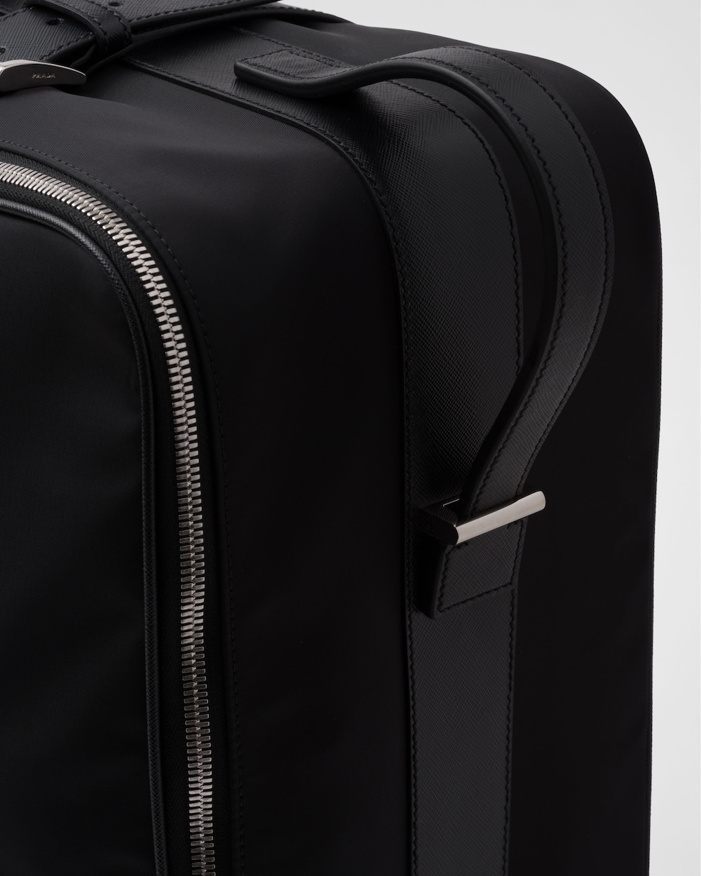 Re-Nylonのモダンで実用的な個性、魅力的なヴィンテージ感あふれるディテールが融合し、「サフィアーノ」レザー(牛革)のディテールが光るスーツケース。セミハードデザイン。レザーハンドルと2輪キャスターを備え、エナメルメタルのトライアングルロゴがプラダらしいアイコニックな魅力を放つアイテム。 サスティナブルなお手入れ方法:製品の風合いを保つため、また環境への負荷を軽減するために、製品を頻繁にクリーニングすることを推奨しておりません。使用後は風通しの良い場所で陰干ししていただき、クリーニングが必要な場合は環境に配慮したクリーニング店でドライクリーニングをすることをおすすめします。