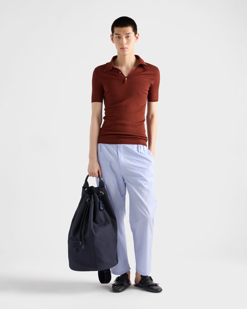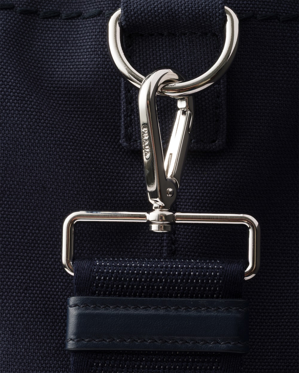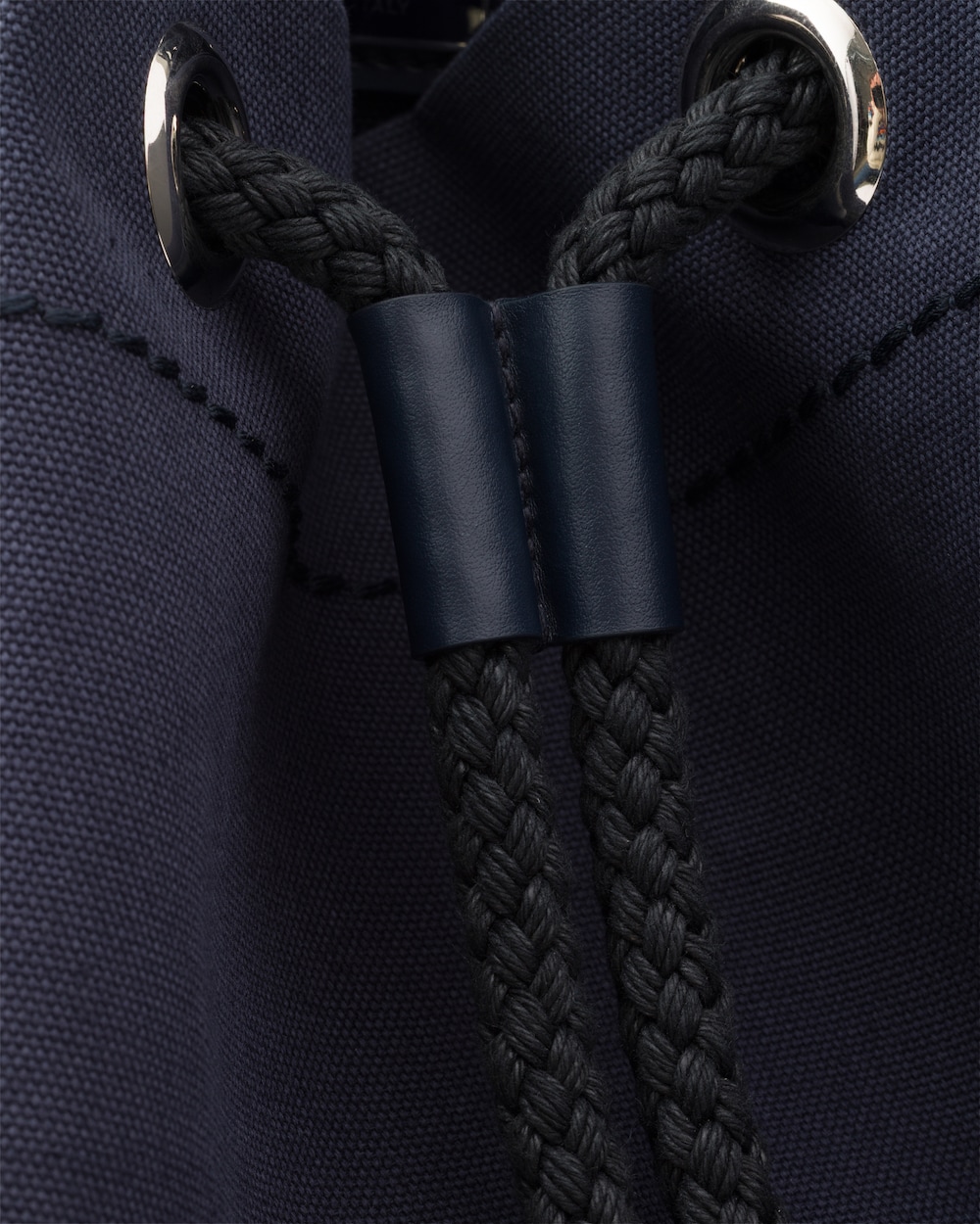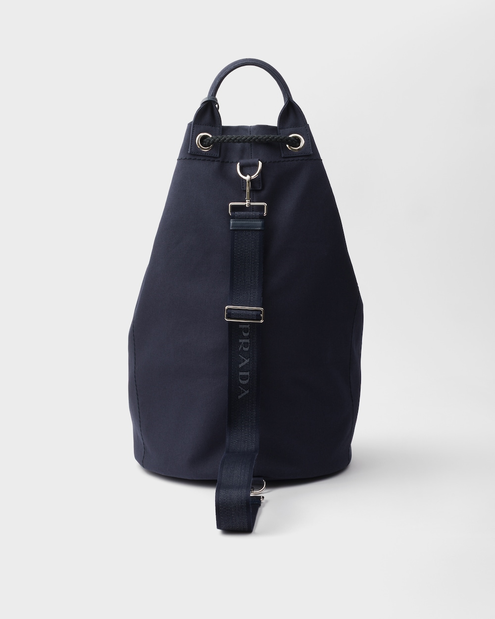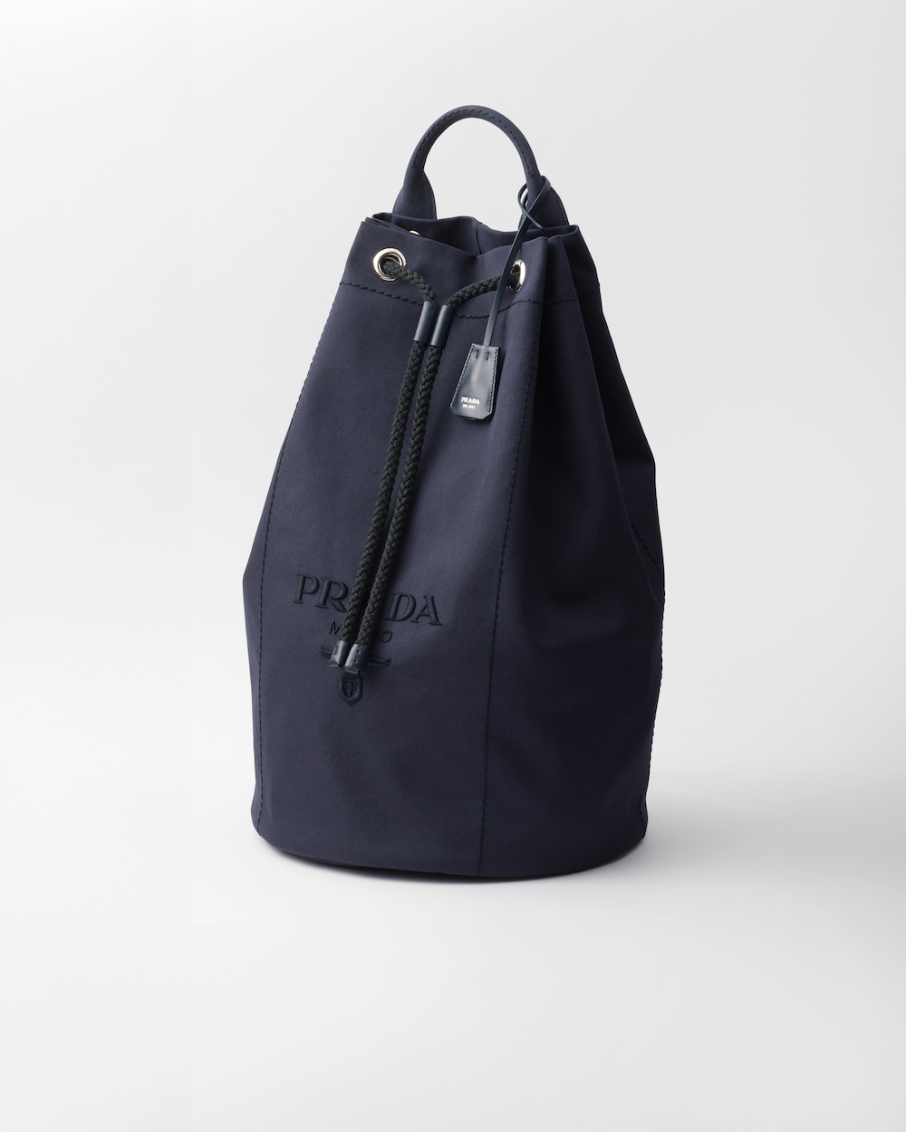 キャンバスを使用した軽やかなデザインのドローストリング ダッフルバッグ。調節可能なショルダーストラップとレザーのディテールが特徴のスポーティなスタイル。同色のレタリングロゴ刺繍がプラダらしいタイムレスな魅力を添えています。