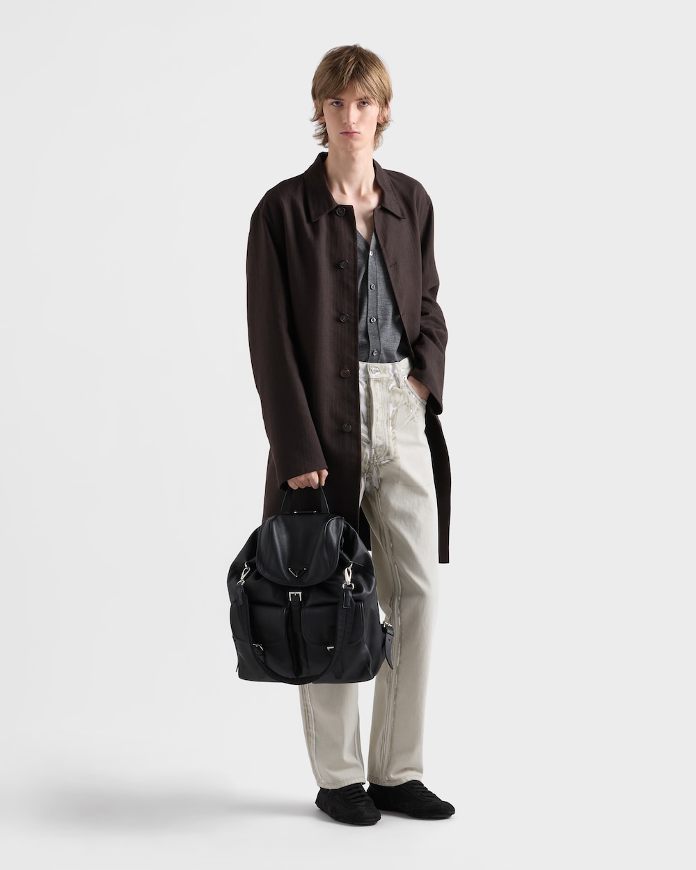このミニマルで機能的かつ革新的なバックパックは、プラダのDNAのコードを独自でタイムレスなデザインで体現しています。アイコニックなアクセサリーは、柔らかいレザーを使用し、機能的で多用途な本質を保ちながら、収納力のあるシルエットに洗練されたキャラクターを加えています。