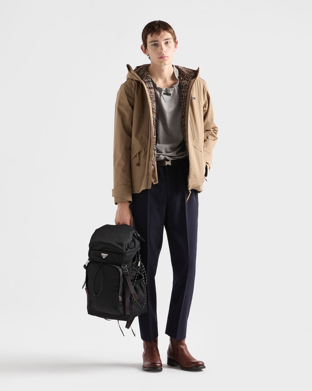 トレッキングスタイルにインスパイアされたこのRe-Nylonバックパックは、都会的なスタイルとアウトドアの要素を組み合わせています。レザートリムを施したゆとりのあるデザインで、外側と内側に複数のポケットを備え、快適なパッド入りメッシュ素材の背面が特徴です。機能性と装飾性を融合したテクニカルなディテールが、現代的でスポーティな印象を際立たせます。製品の風合いを保ち、環境への負荷を軽減するために、頻繁なクリーニングはおすすめしておりません。使用後は毎回、製品を風通しの良い場所で乾かし、ラベルに記載されている洗濯表示に従ってお手入れしてください。