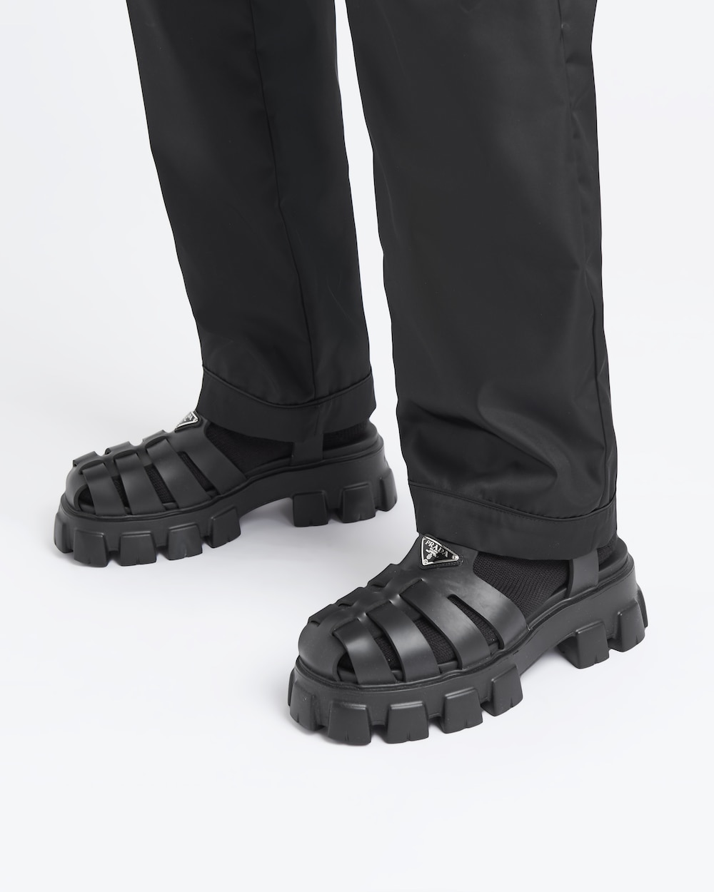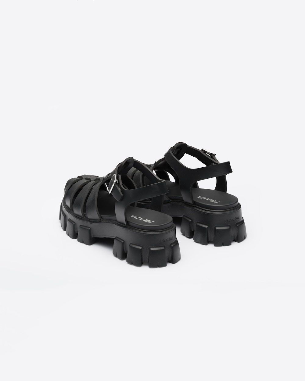 2022年春夏コレクションのスタイルは、在りし日の夏の思い出。想像上のビーチをテーマに多彩な美しさを融合し、チャンキーソールを合わせたラバーサンダル。独創的な色使いでレトロデザインを取り入れ、プラダのハイブリッドスタイルを表現しました。存在感のあるエナメルメタルのトライアングルロゴをフロントにあしらい、タイムレスなプラダの魅力をプラスしています。