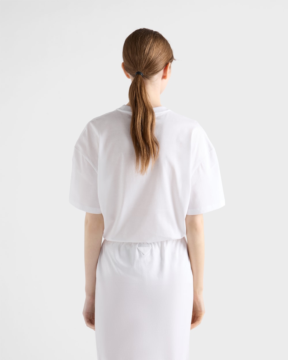 シンプルなラグジュアリーを体現する定番アイテム、プラダのジャージーTシャツ。ベーシックなアイテムを再解釈し、新しい意味を提起する、ブランドの姿勢と探求心が表現されています。