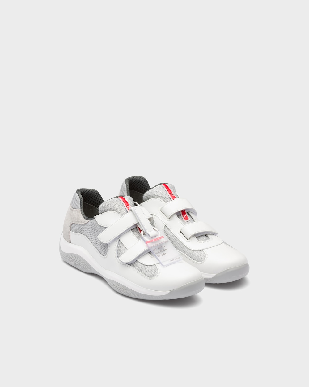 プラダの伝統を体現する、アメリカズカップ スニーカー。90年代にルナ・ロッサチームのためにデザインしたオリジナルスタイルと同じシルエットで復刻。柔らかでありながら耐久性に優れたレザーと、通気性の良い革新的なバイクファブリックを組み合わせた、セーリングの世界をモチーフにしたデザイン。仕上げにオーバーサイズのラバーソールと、面ファスナーのダブルストラップを施しています。プラダ リネア・ロッサロゴでアイコニックなアクセントを効かせ、さらに取り外し可能な「Beyond the Line」タグがアクセントになったアイテムです。