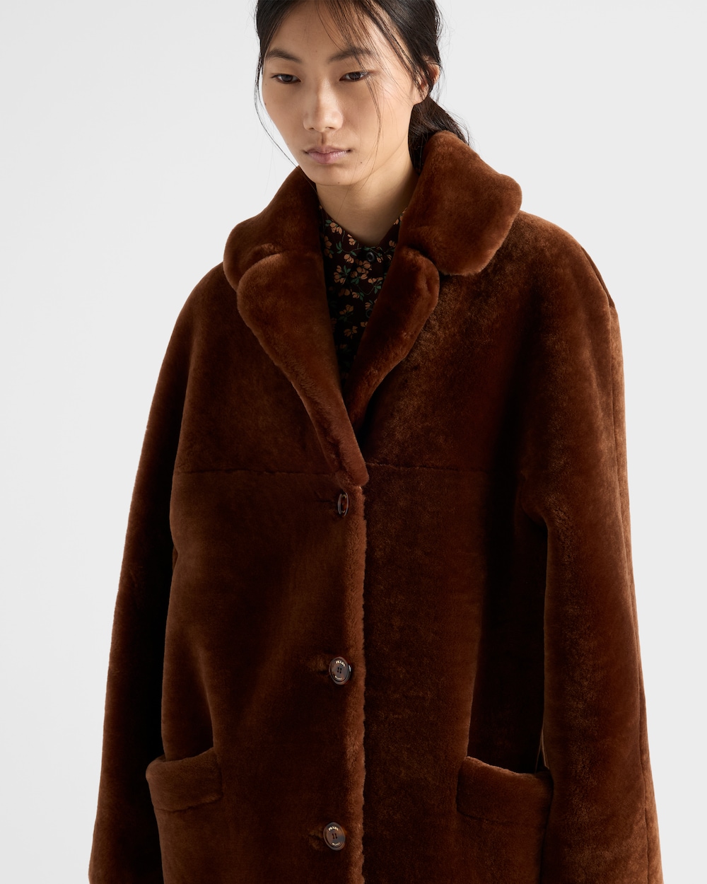 レトロなシルエットを現代的な方法で再解釈し、洗練された柔らかなデザインが特徴のシアリングコート。