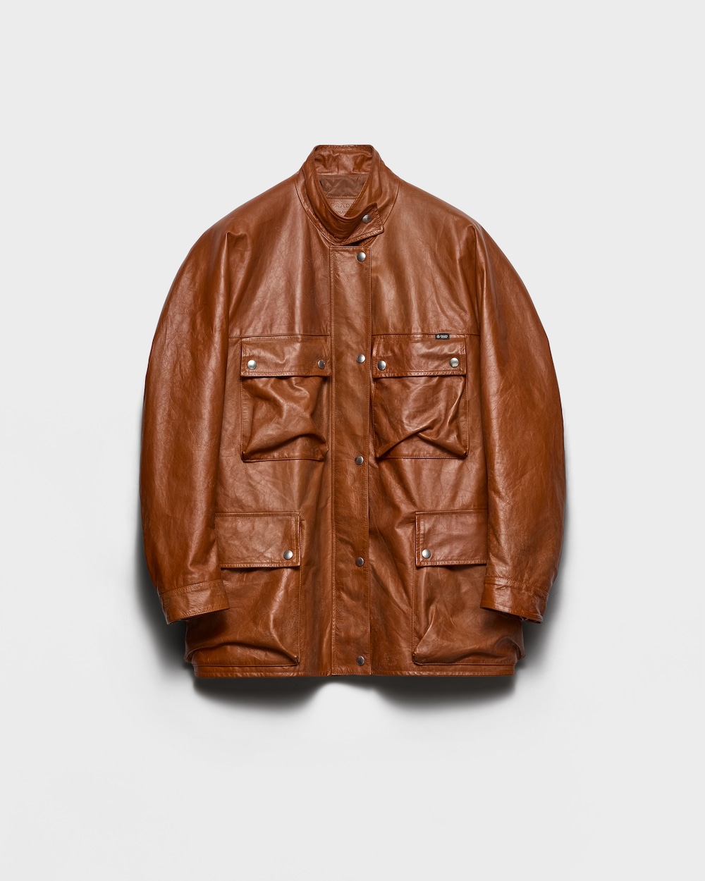 このカバンジャケットは、実用的な本質を持ちながら、親しみやすく使い込まれた衣服の魅力を備えています。洗練されたクラフツマンシップが、ソフトレザーに独特のアンティーク仕上げを施し、機能的なメンズウェアスタイルのシルエットに奥行きを与えます。