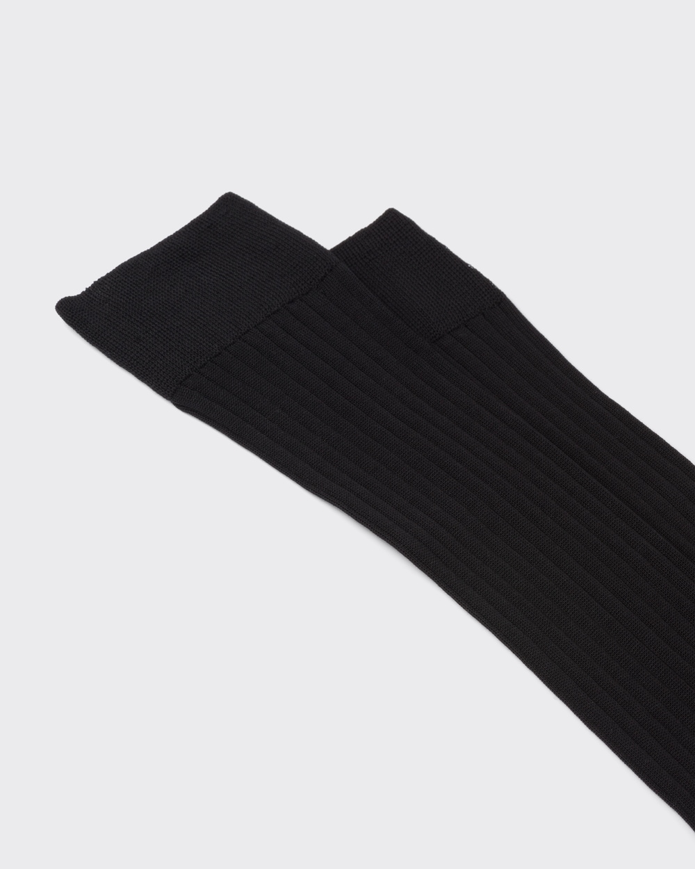 洗練されたリブ編みモチーフが施された、現代的な個性が光るコットンのソックス。