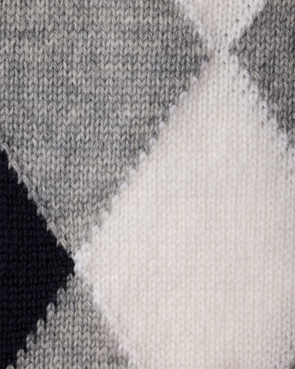 アーガイル柄が、リブ編みのトリムをあしらったウール製のニーハイソックスを引き立てています。