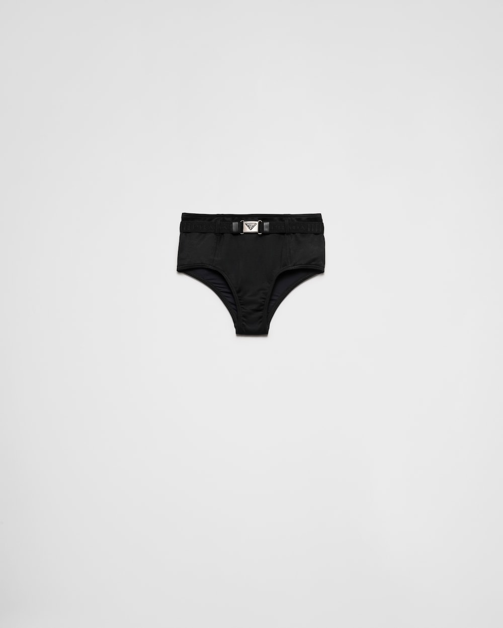 インターロックファブリックを使用したビキニボトム。洗練されたラインを描くハイウエストのデザインを、トライアングルロゴ付のベルトで強調しています。