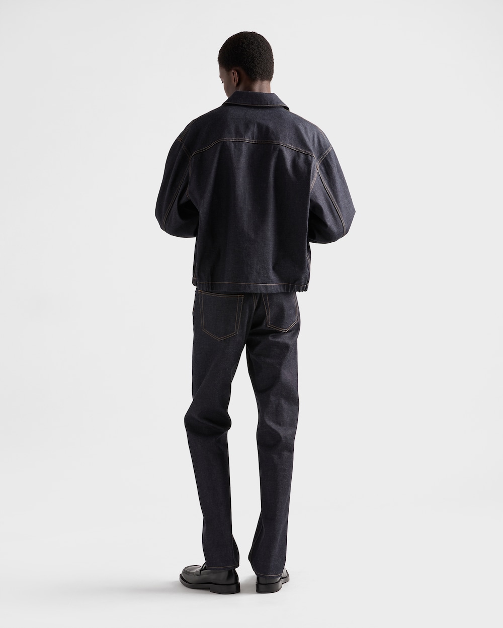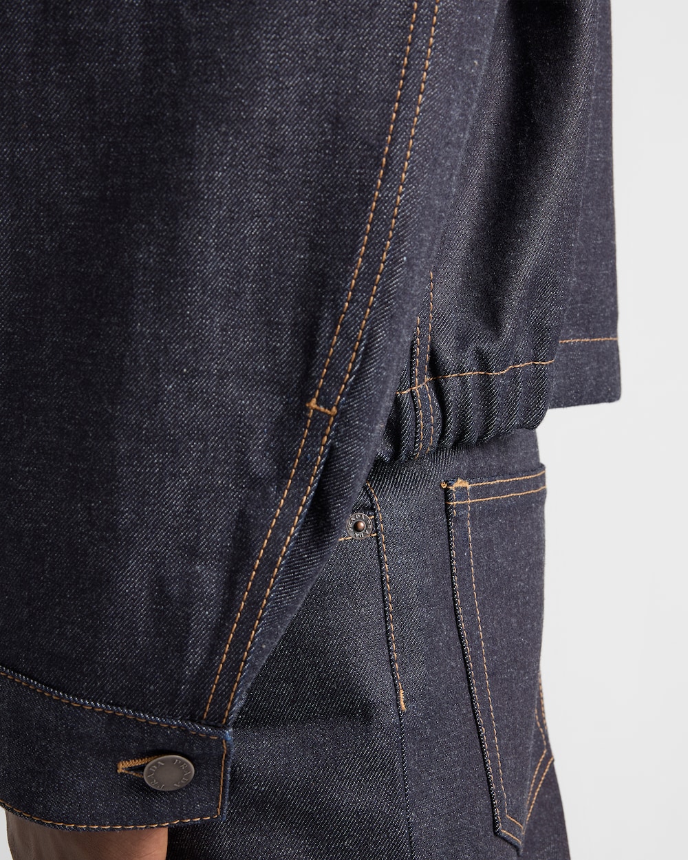 この汎用性の高い現代的なブルゾンジャケットは、ノンウォッシュデニムで仕立てられ、コントラストの効いたトップステッチが特徴の洗練されたデザインです。洗練されたカジュアルなウェアは、エナメルメタルトライアングルロゴで完成されています。