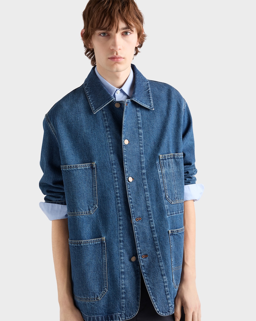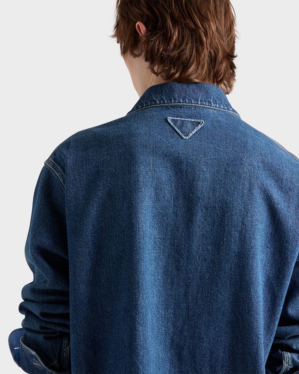 この汎用性の高いブルゾンジャケットは、独特の質感を持つ漂白デニムとユーティリティディテールで洗練されたシルエットを引き立てています。カジュアルでありながら洗練されたウェアは、ファブリックのトライアングルロゴで完成されています。