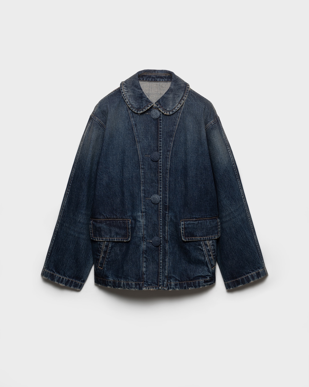 ウォッシュドデニムが、女性らしいシルエットのブルゾンジャケットに個性を加え、カジュアルなファブリックとコントラストの効いた洗練されたディテールが際立っています。レトロな要素が特徴的なデザインを完成させます。