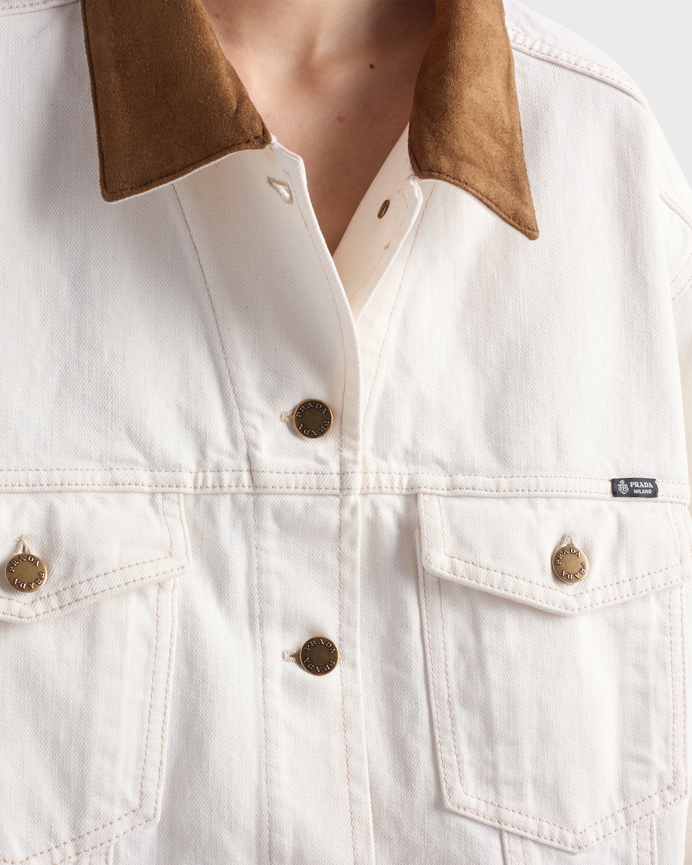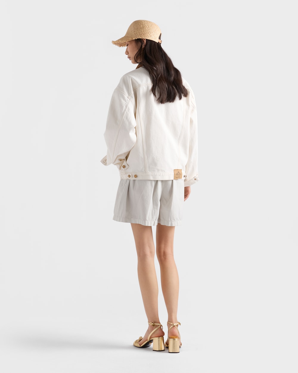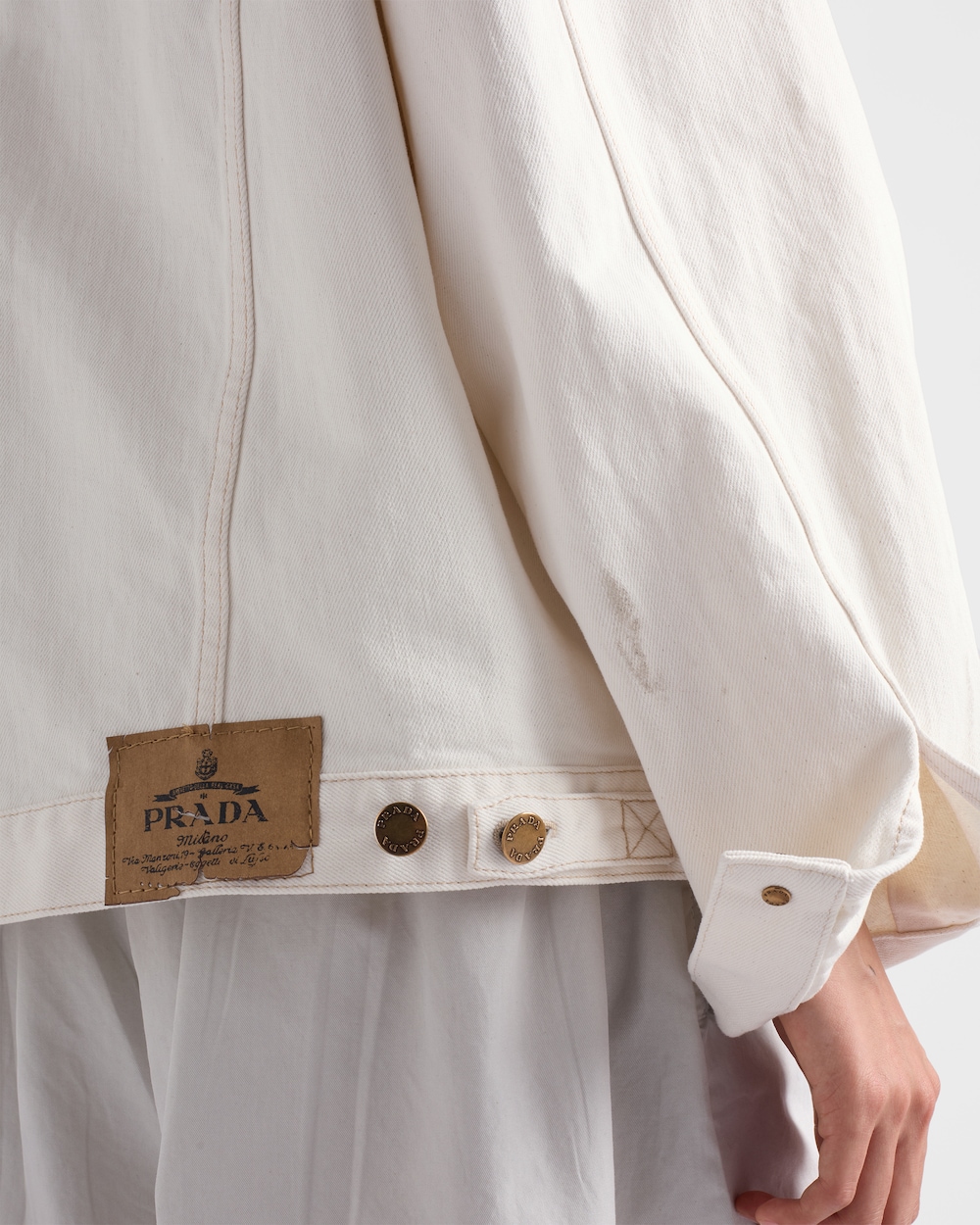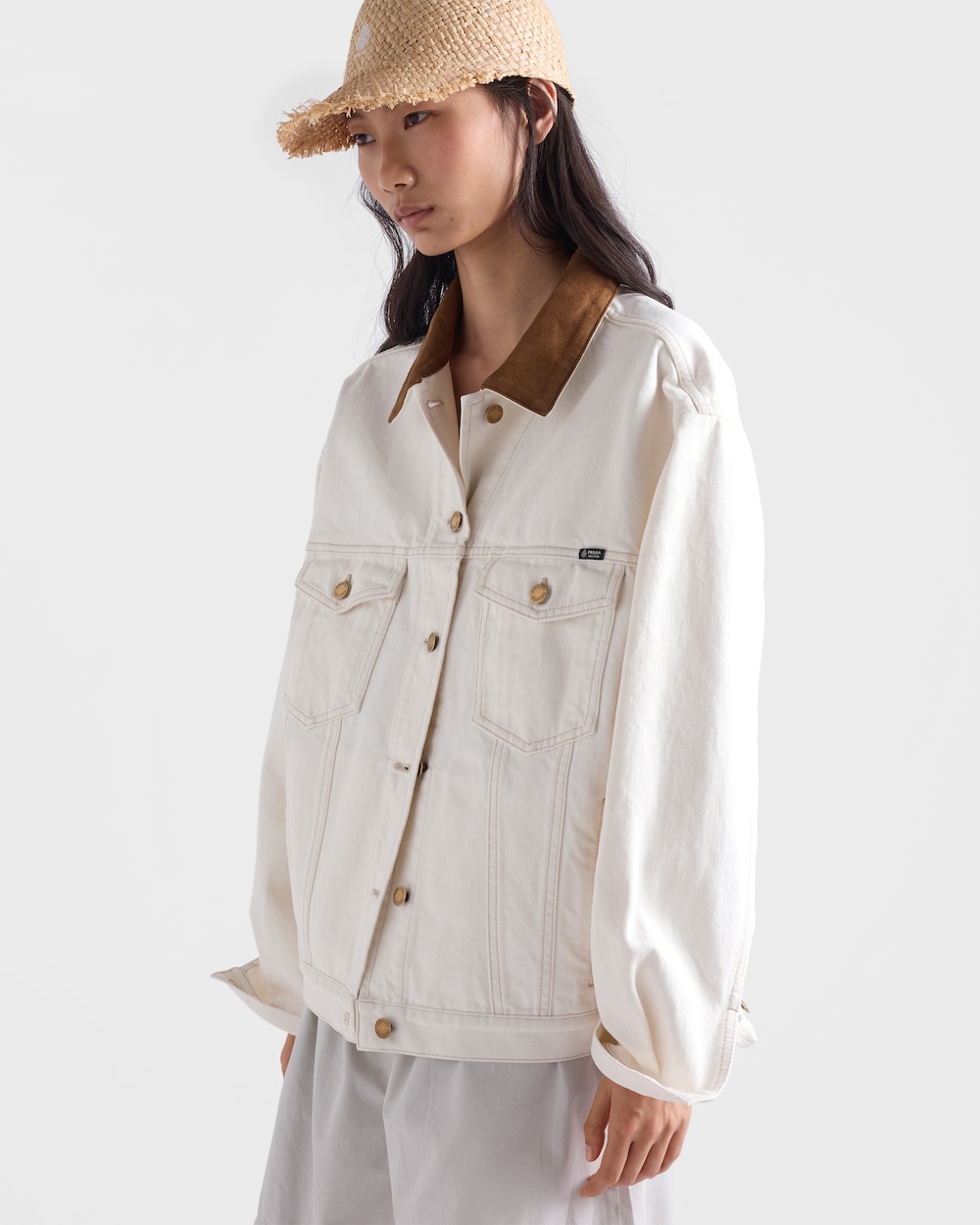涼しげで耐久性のあるデニムが本来の魅力を取り戻し、レザーのディテールと融合することで、プラダの二元性を体現したハイブリッドなデザインのワークウェアスタイルに仕上がっています。これは、独特なライフスタイルの特徴を持つ夏のシーズンへの新しいアプローチです。