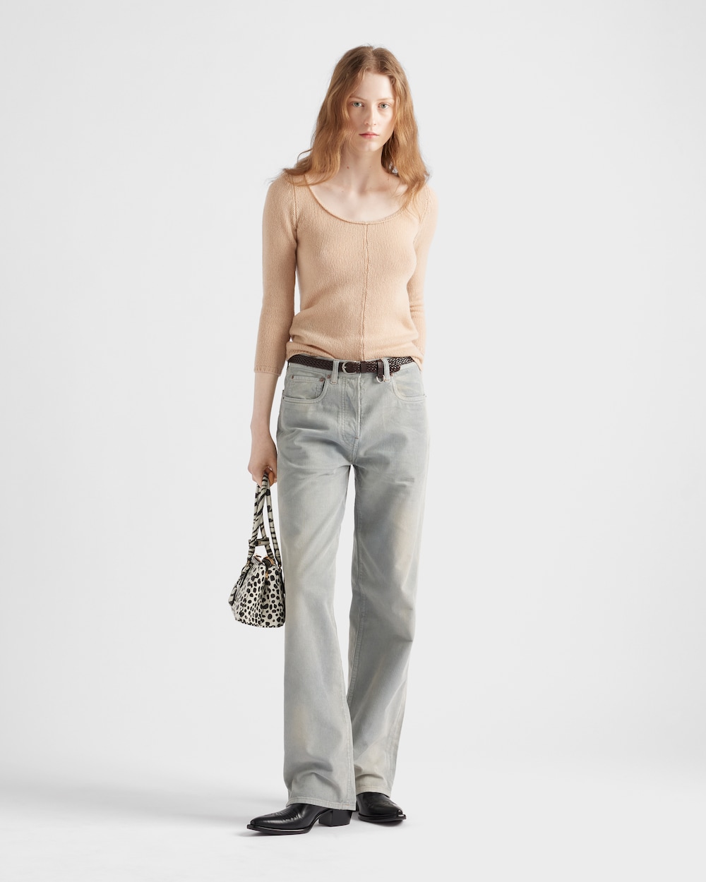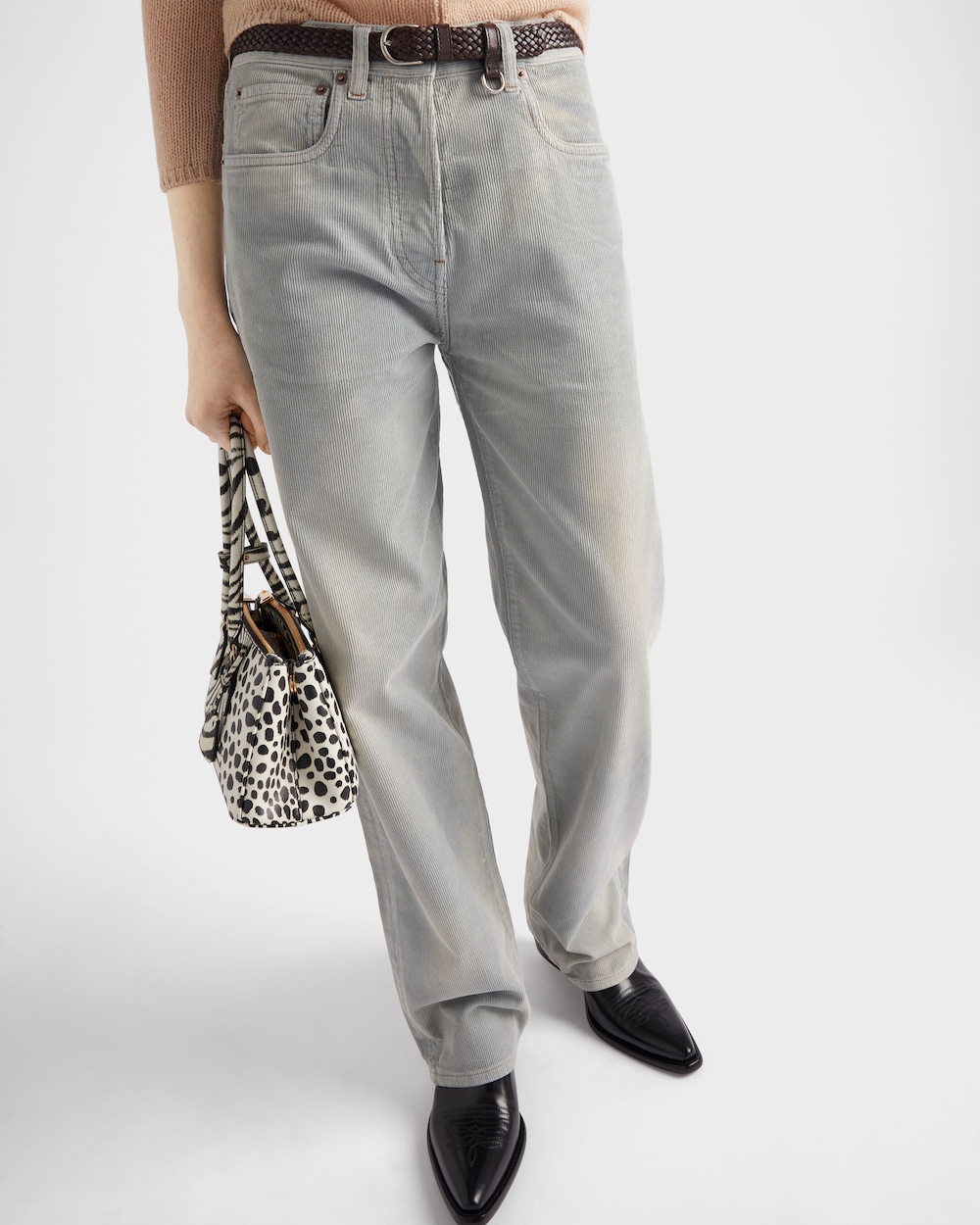 革新的でハイブリッドなデザインが魅力のリラックスフィットのローライズジーンズ。ウォッシュドデニムの風合いを再現した細いゲージのコーデュロイを使用しています。アーカイブロゴ入りのラベルをあしらった、汎用性の高いスタイル。