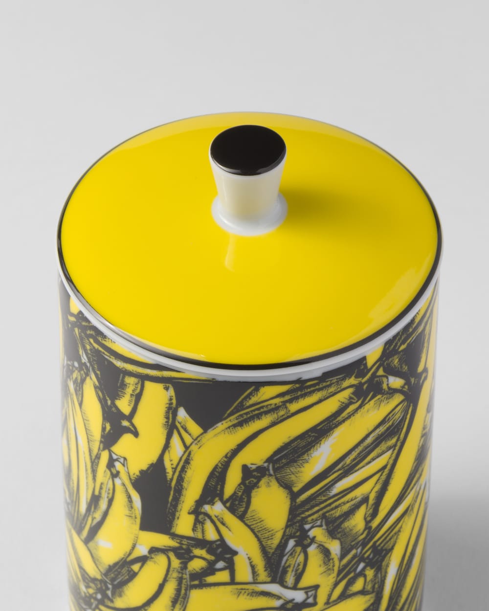 アーカイブプリントにインスピレーションを得たポーセリンのキャンドルホルダー。ジャスミン、マグノリアエッセンス、バナナアコードの魅惑的なブレンド、エクスクルーシブなSeringàtフレグランスの新しい香りが詰まっています。2011年春夏コレクションに登場したアイコニックなBananaモチーフがあしらわれた、ラグジュアリーでモダンなデザインオブジェクト。