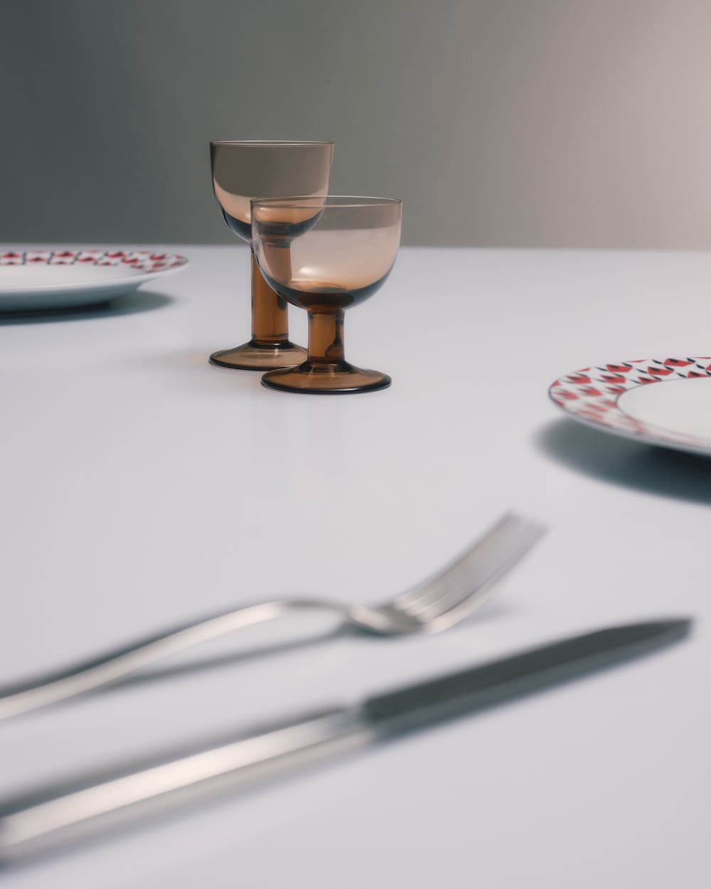 現代的でミニマルな魅力にあふれるモダンなデザインのグラス。幾何学的なラインとエレガントな円錐形のステム(脚)が魅力的。上質な手吹きのボヘミアクリスタルが、独特の音と透明感と輝きを生み出すセット。